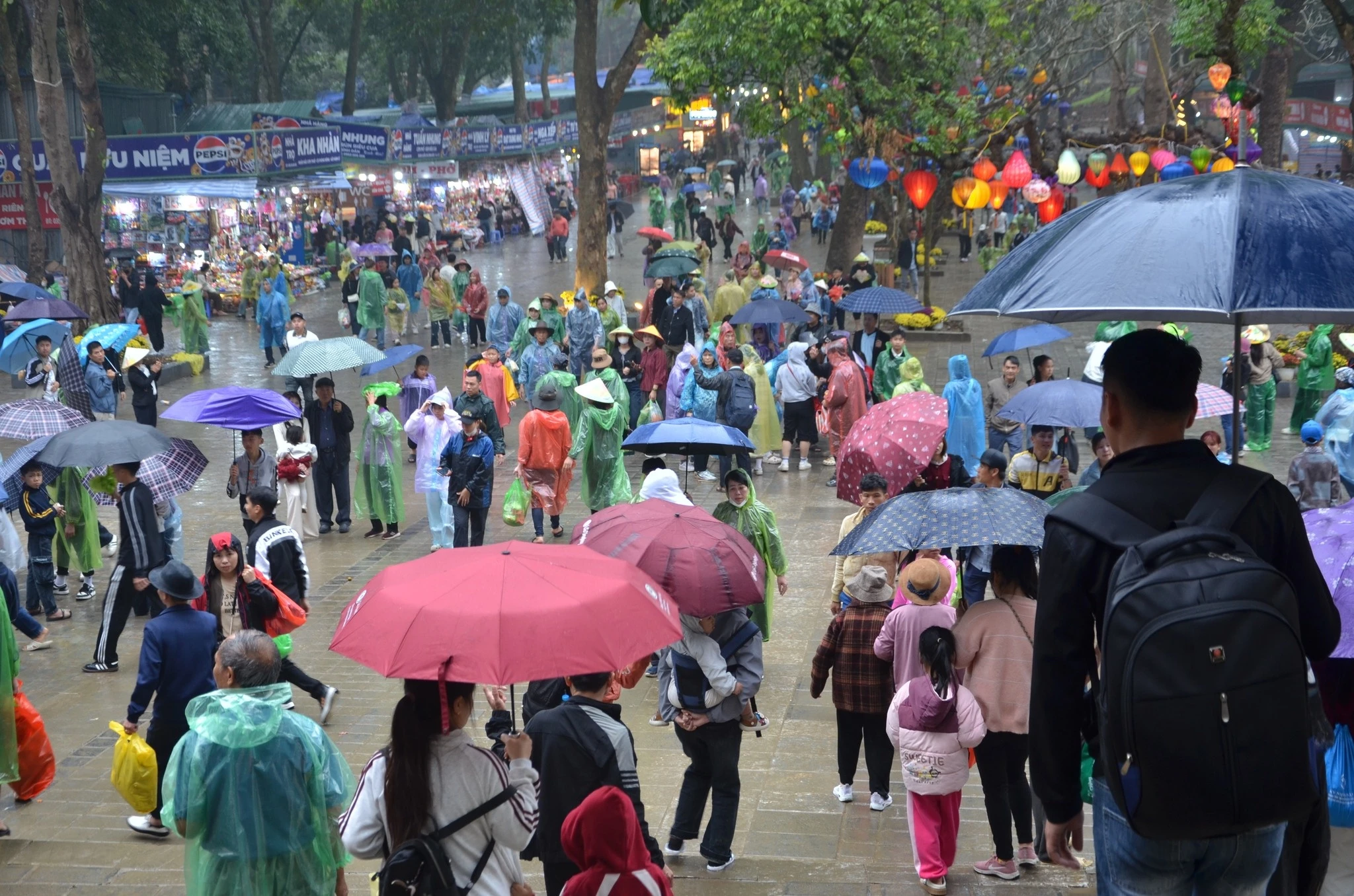 Hàng vạn du khách “đội mưa” đổ về chùa Hương từ tinh mơ dự lễ khai hội mùng 6 Tết. Xã Hương Sơn (Hà Nội) đặt mục tiêu đón hơn một triệu lượt khách trong năm nay.