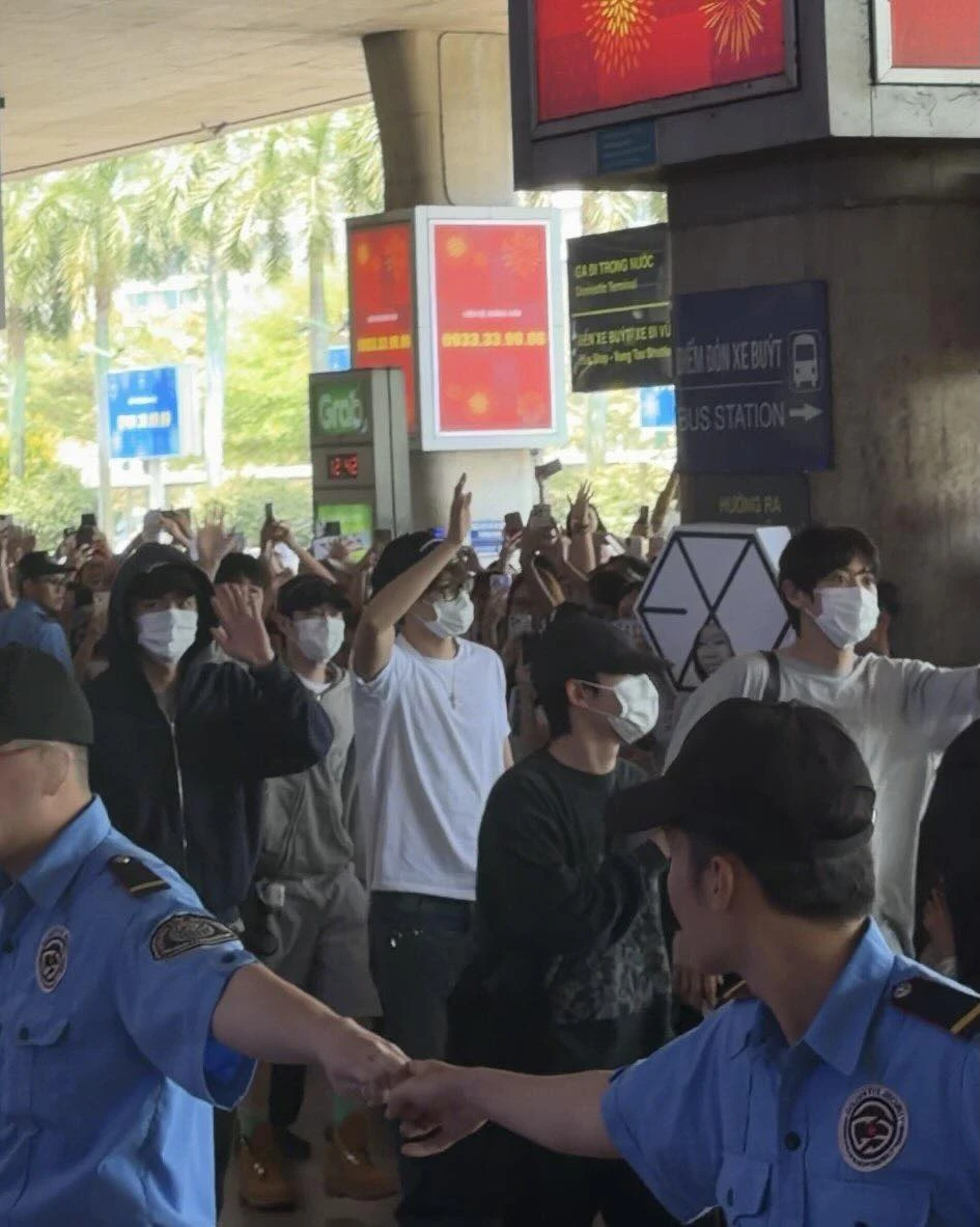Các thành viên EXO đã có mặt tại TP.HCM vào chiều 24/4 (Ảnh: Facebook)