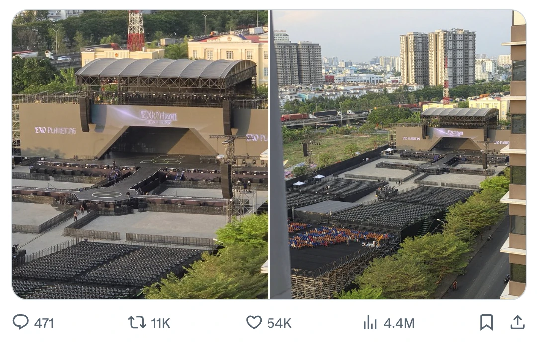 Đính kèm chia sẻ là view nhìn thẳng ra sân khấu và nhanh chóng viral trên X, đặc biệt là fan EXO và Kpop, nhận về 4,4 triệu lượt xem và 11k lượt đăng lại sau 17 tiếng.