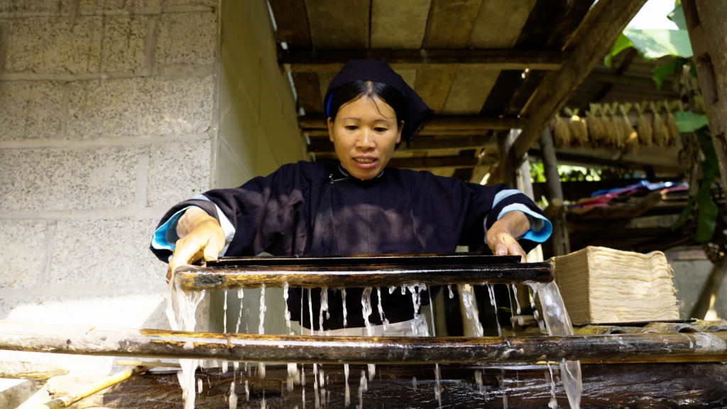 Từ vỏ cây dướng thô ráp, qua bàn tay khéo léo và dòng nước suối mát lành, những tờ giấy bản mỏng tang nhưng dai bền ra đời. Đây không chỉ là giấy, đây là nơi lưu giữ văn tự, sắc phong và tâm linh của người Nùng An qua bao thế hệ. Một sự kết nối mộc mạc giữa rừng già và tri thức.