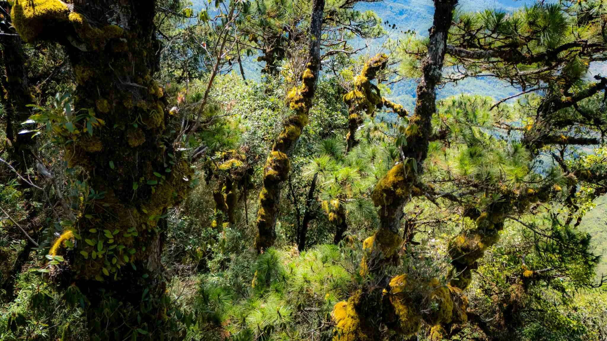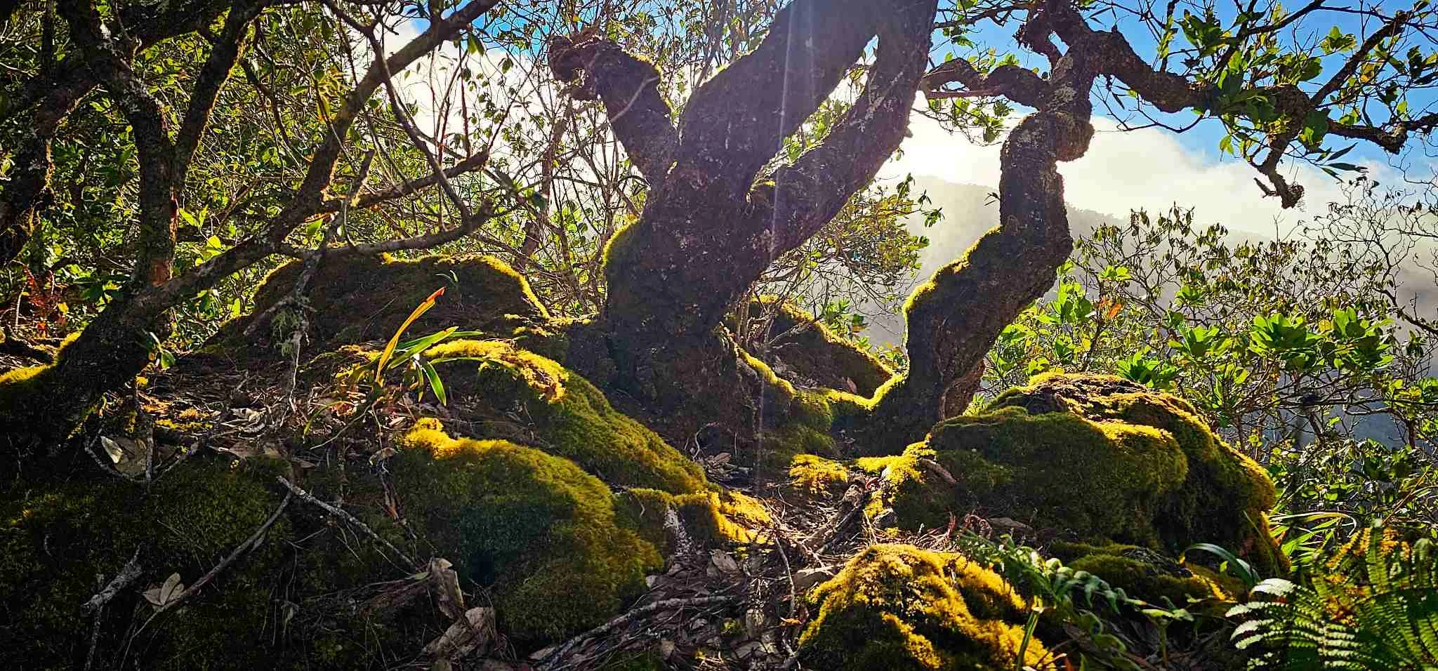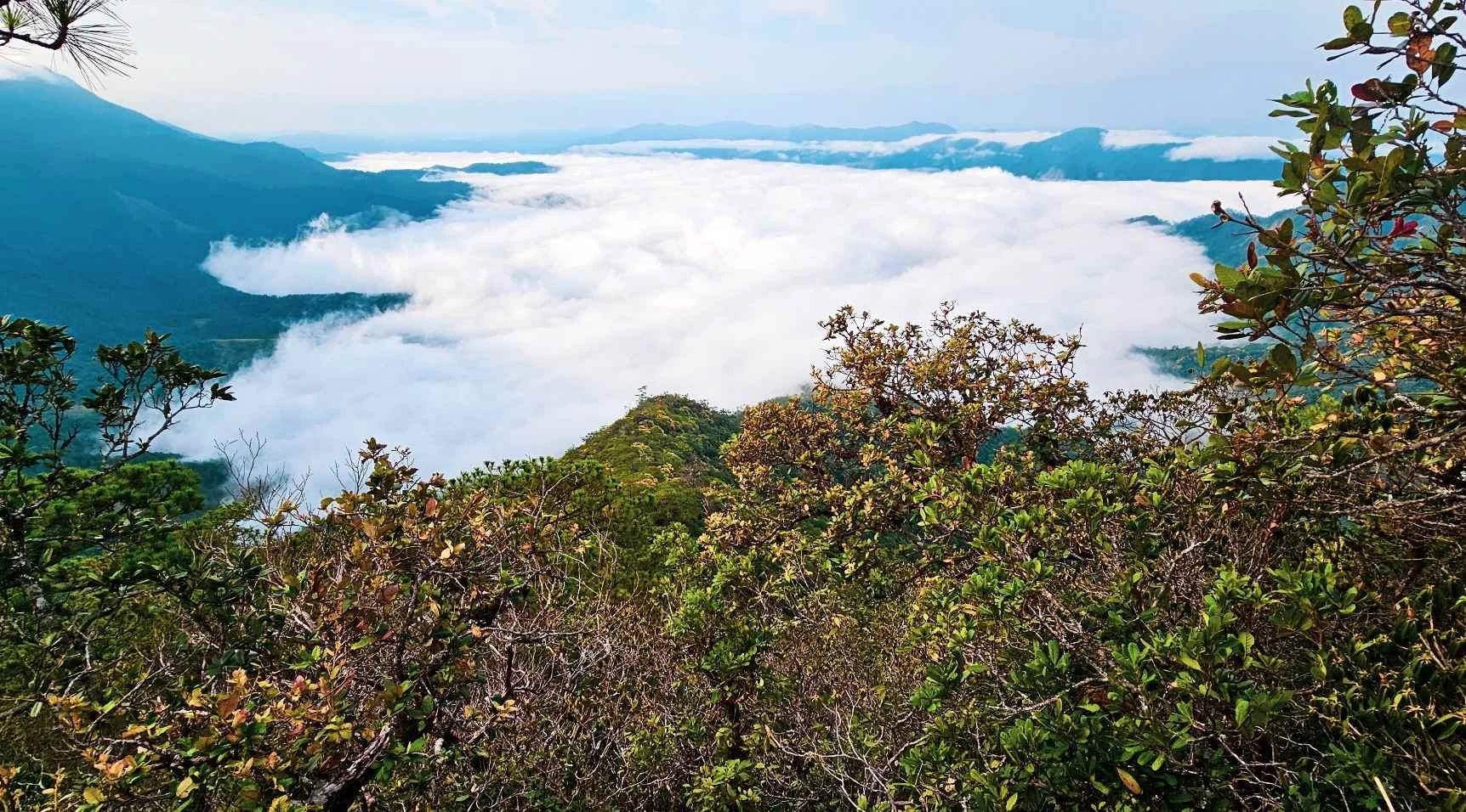 Tán cây thấp giúp du khách dễ dàng ngắm nhìn biển mây và cảnh quan phía dưới. Ảnh: Đinh Công Lương