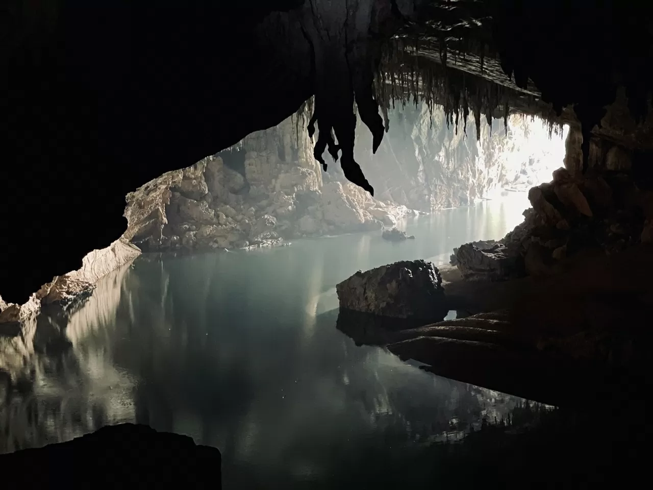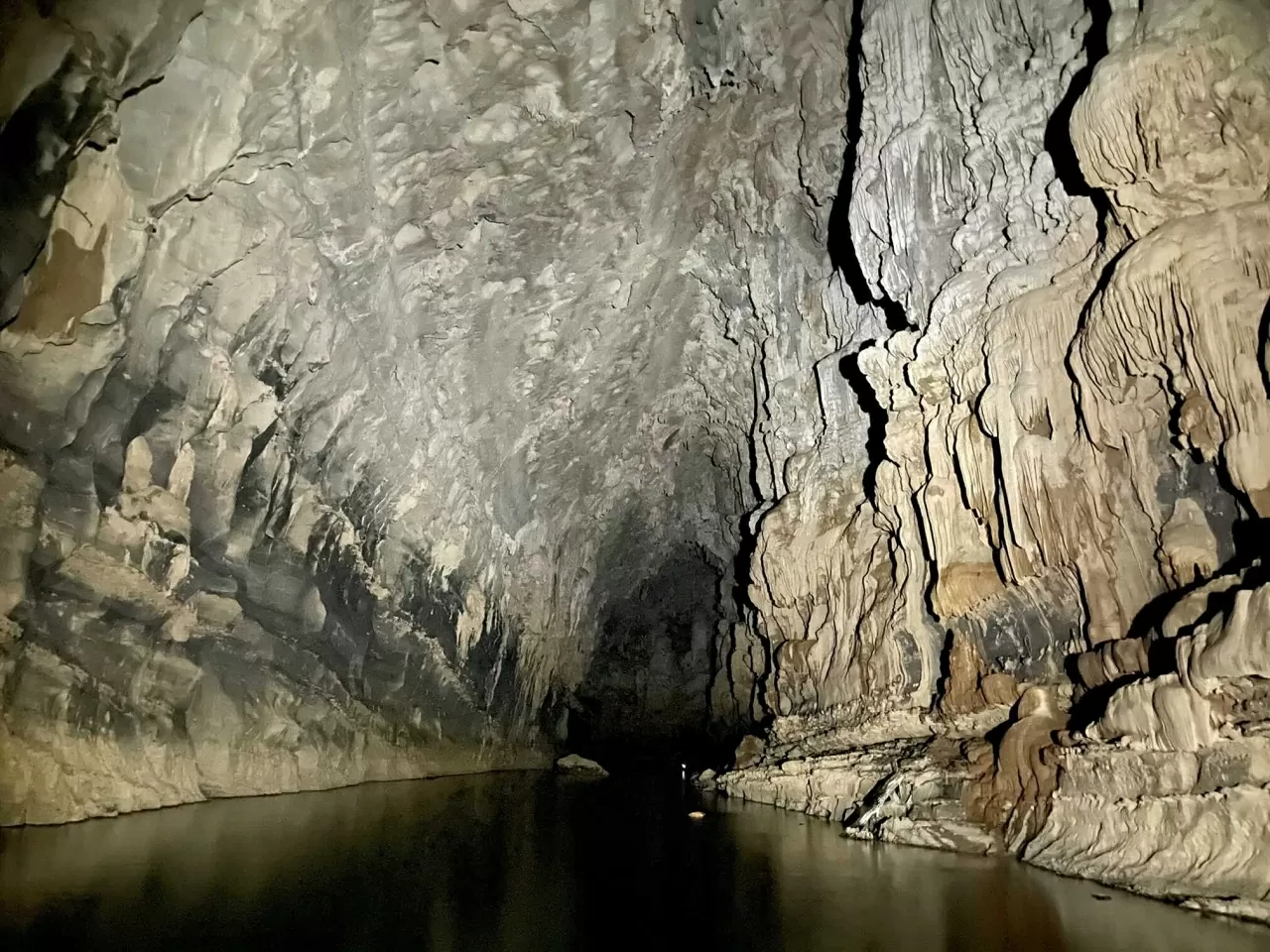 | Bên trong hang là thế giới của những dải thạch nhũ như rèm buông, hồ nước bậc thang dài tới 61m, cùng vô số cấu trúc địa chất độc đáo. Ngoài cửa hang là hồ nước rộng 200m, được người dân bảo tồn làm khu sinh sản cá, đóng vai trò quan trọng trong sinh kế địa phương. (Nguồn: GIZ ProFEB) |