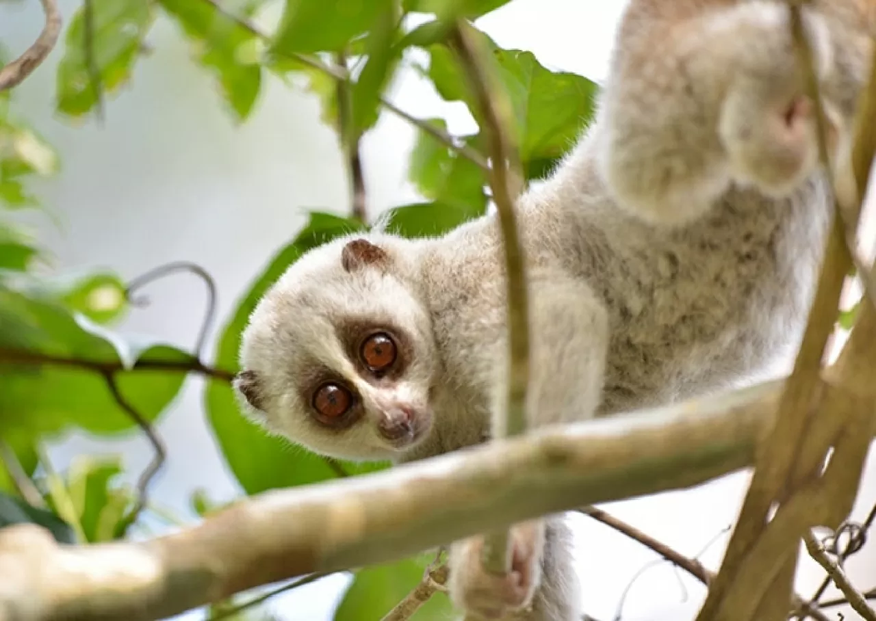 | Không chỉ nổi bật bởi cảnh quan thiên nhiên kỳ thú, nơi đây còn là một trong những khu vực có giá trị bảo tồn cao nhất thế giới. Với vị trí nằm trong “điểm nóng đa dạng sinh học Indo-Burma”, Hin Nam No là nơi cư ngụ của hơn 1.500 loài thực vật và 536 loài động vật có xương sống, trong đó có nhiều loài đặc hữu, có nguy cơ tuyệt chủng toàn cầu như cu li nhỏ, cu li Bengal, voọc chà vá chân đỏ hay tê tê Sunda. Trong ảnh: Cu li chậm Bengal. (Nguồn: Vườn Quốc gia Hin Nam No) |