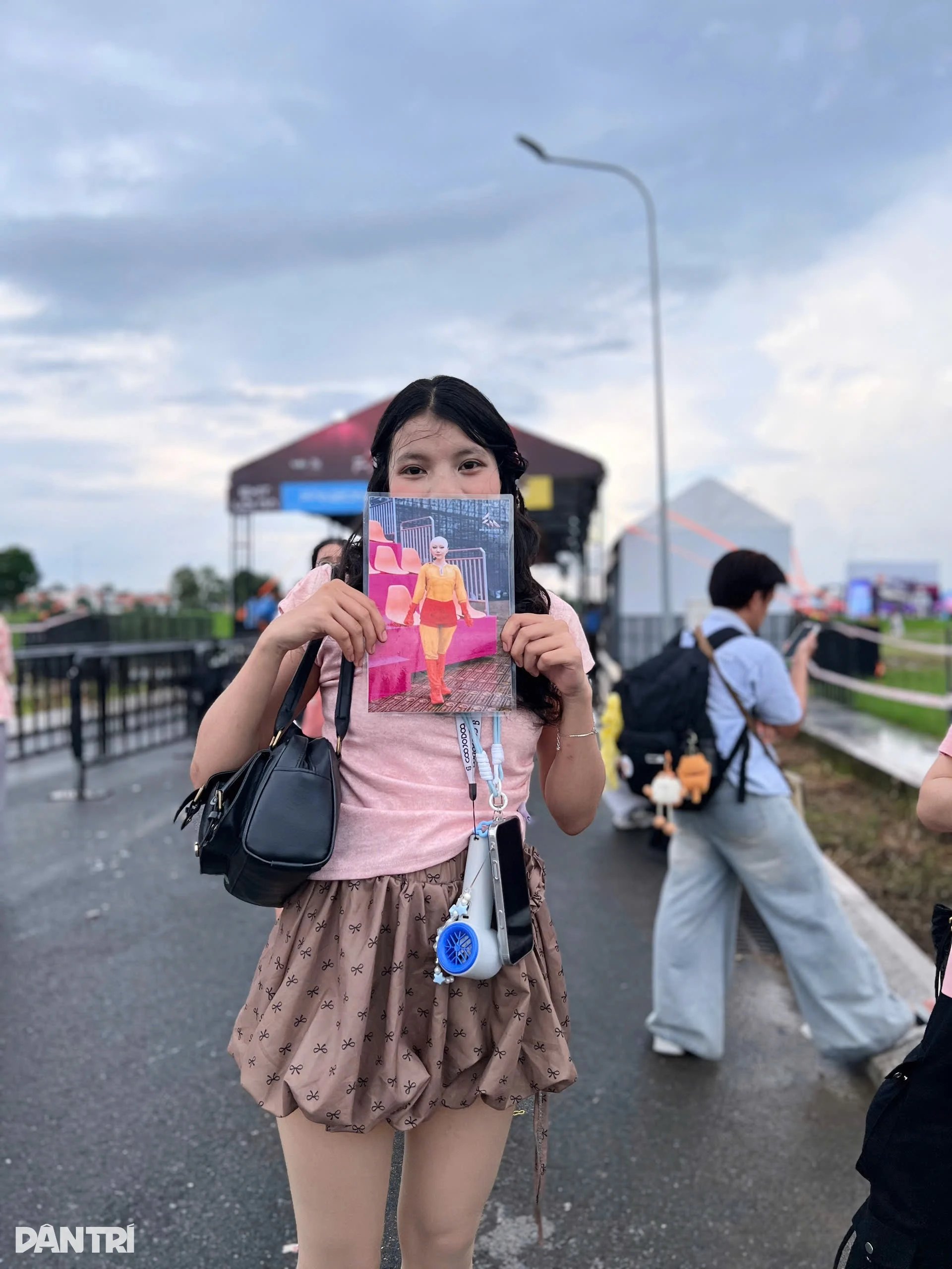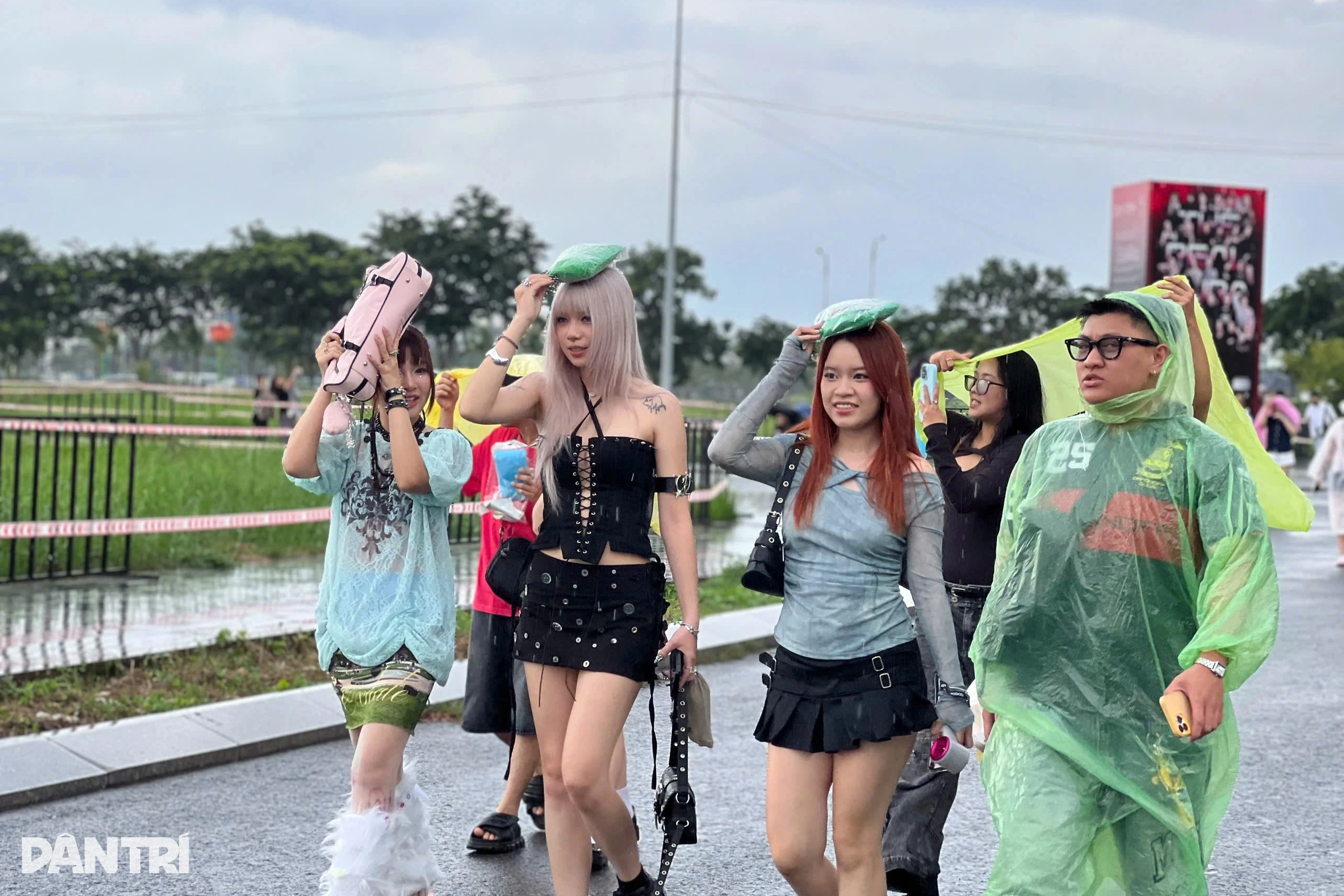 Dù vậy, nhiều bạn trẻ đã chuẩn bị áo mưa, ô, đồ ăn nhẹ để giữ sức. Cảnh tượng từng nhóm mặc áo mưa, tay cầm vé, kiên nhẫn chờ vào bên trong đã tạo nên bầu không khí háo hức nhưng cũng đầy thử thách.