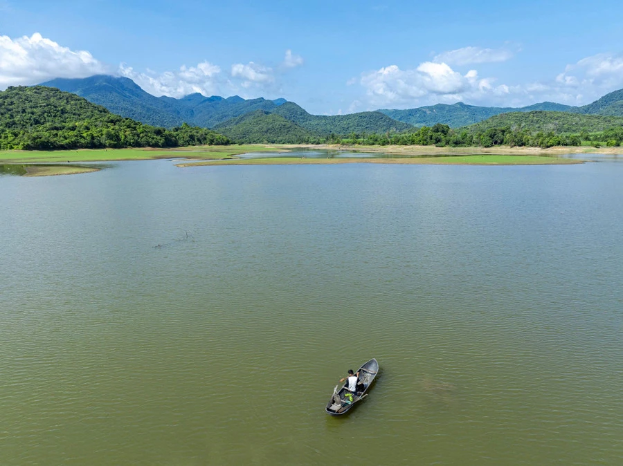 Hồ Núi Một được dãy núi An Trường bao bọc.