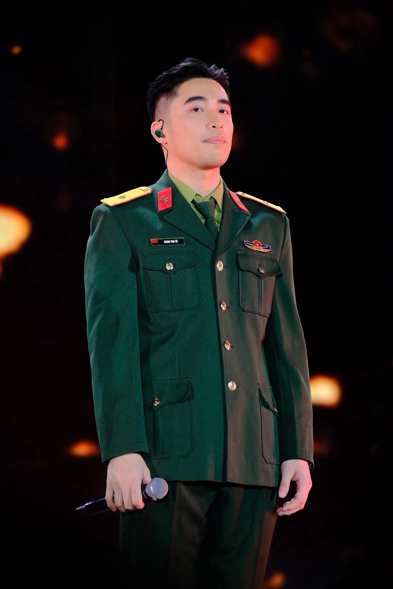 Giữa rừng sao chất lượng, Vũ. nổi bật không chỉ với giọng hát dày dặn, nội lực mà còn nhờ ngoại hình lạ lẫm của mình. Nam ca sĩ diện lên mình bộ quân phục ngay ngắn, chỉn chu, mang đến hình ảnh trang nghiêm, tự hào. Vũ. vẫn điển trai như thường ngày nhưng nay dân tình phát hiện trên khuôn mặt có một thay đổi nhỏ - bộ ria và râu đã được cạo nhẵn mịn.