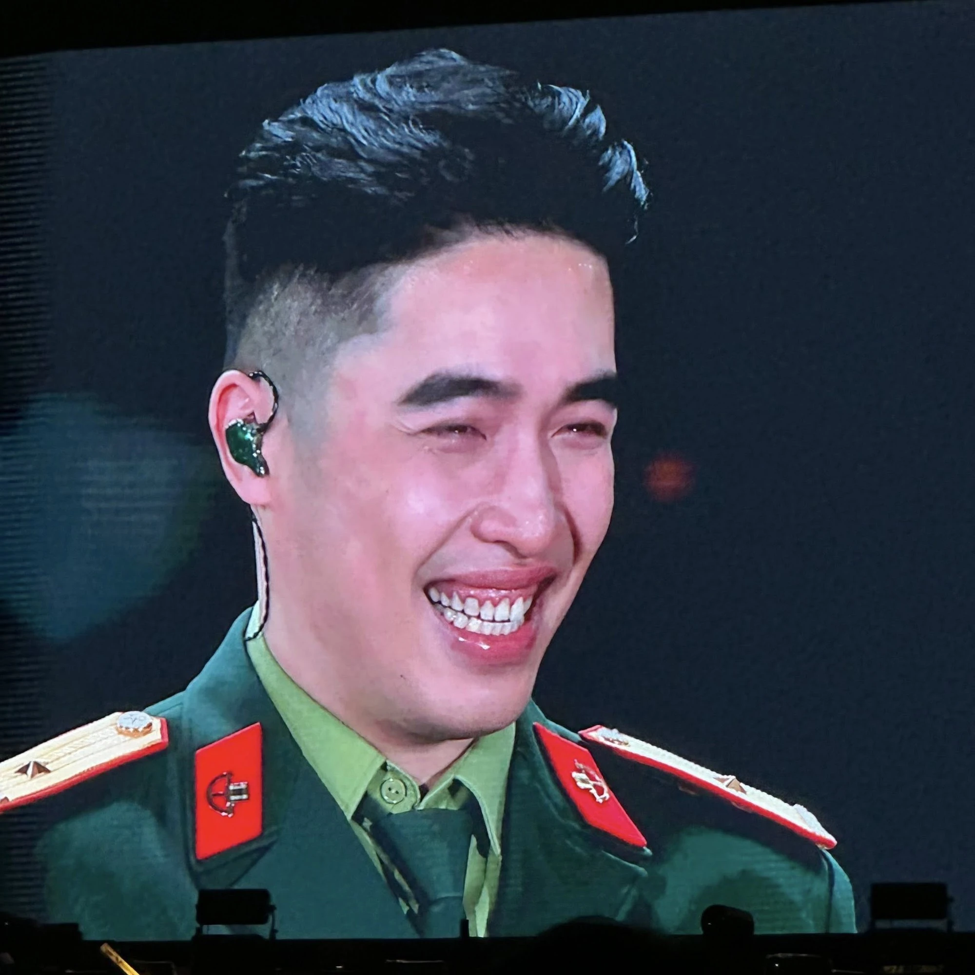 Visual Vũ. sáng bừng trên sân khấu, đến ống kính cam thường cũng không làm khó được anh chàng. Đường nét nam tính và ưa nhìn cũng hiện lên rõ hơn, giúp Vũ. hack tuổi "đỉnh chóp". Màn hình LED chiếu lại hình ảnh Vũ còn đang học tại Học viện Khoa học Quân sự Hà Nội - bất ngờ là anh chàng trông gần như y hệt quá khứ theo binh nghiệp.