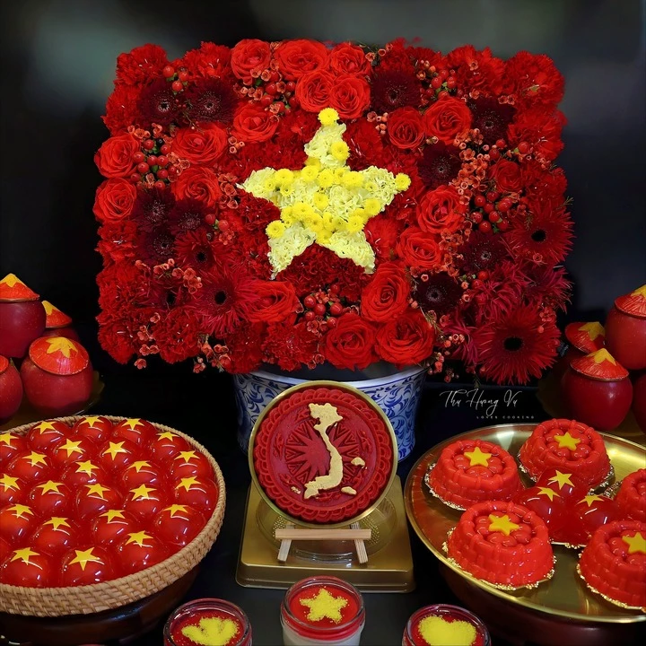 Không chỉ ở đường phố, công sở hay nơi công cộng, tinh thần yêu nước dịp Quốc khánh 2/9 năm nay còn hiện diện trong chính gian bếp của nhiều gia đình. Hàng loạt mâm cỗ đón mùa Vu lan rực rỡ sắc đỏ – vàng do các mẹ đảm sáng tạo đang gây sốt cộng đồng mạng. Không chỉ là sự bày biện đẹp mắt, mỗi mâm cỗ mang biểu tượng của Tổ quốc còn gửi gắm tình yêu quê hương, niềm tự hào về đất nước Việt Nam.