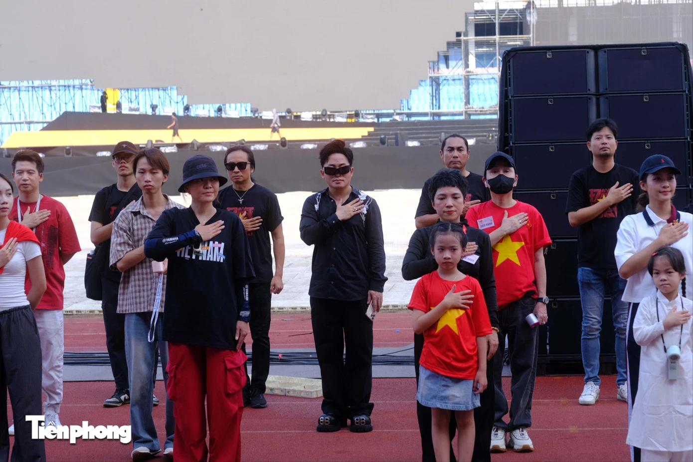 Chiều 28/8, để chuẩn bị cho màn trình diễn quan trọng ở Quảng trường Ba Đình, dàn nghệ sĩ như Khả Ngân, Hiếu Nguyễn, Bảo Thanh, Tùng Dương tập luyện hăng say dưới nắng gắt