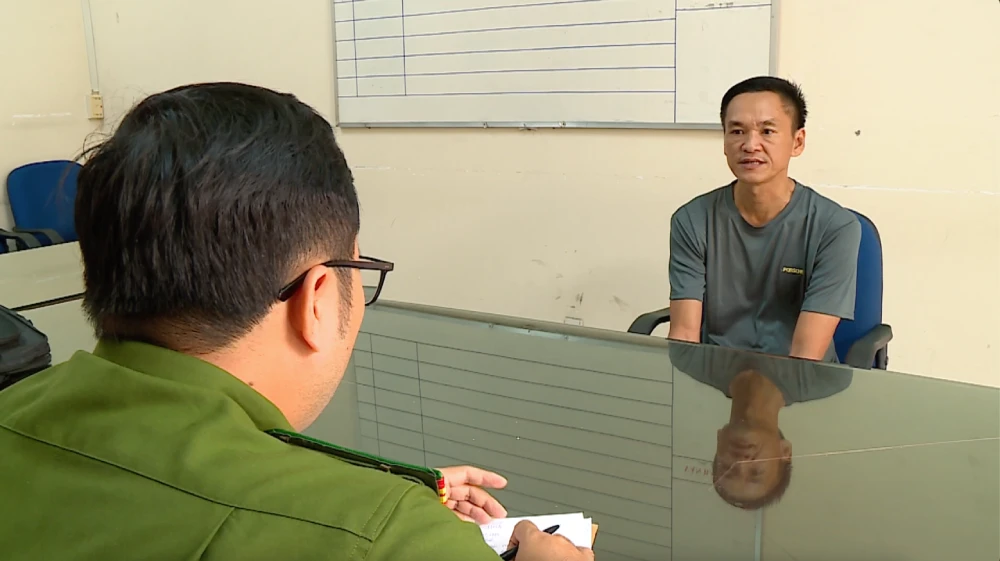 Công an lấy lời khai Luo Shenghua, là đối tượng chủ mưu, cầm đầu. Ảnh: CACC