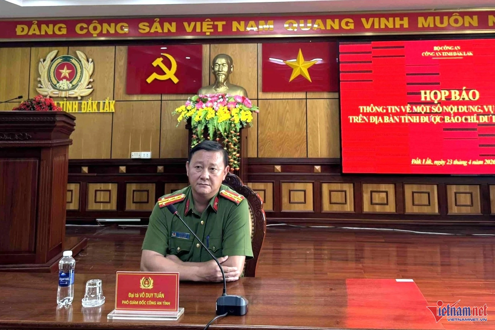 Đại tá Võ Duy Tuấn – Phó Giám đốc Công an tỉnh Đắk Lắk, chủ trì họp báo. Ảnh: Hải Dương