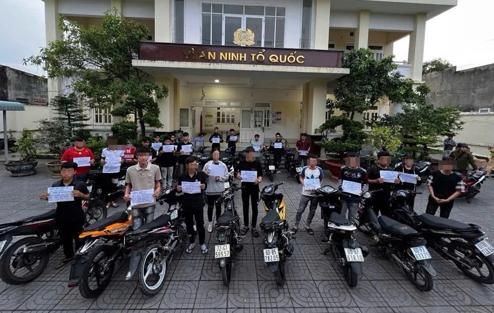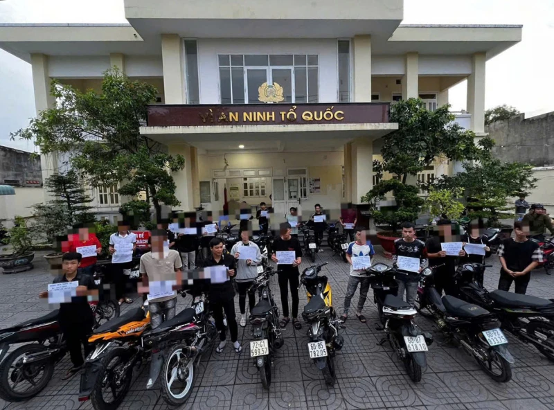 Nhóm 24 thanh thiếu niên tuổi từ 16 đến 22, điều khiển xe máy thay đổi kết cấu, che biển số để tụ tập đua xe trái phép tại xã Phước Hải (TPHCM) bị lực lượng chức năng ngăn chặn trong đêm, tạm giữ nhiều "xế độ".