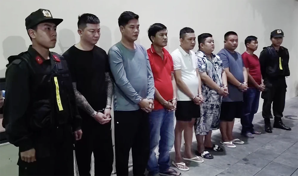 7 đối tượng trong các băng nhóm đòi nợ thuê, bị bắt giữ mới đây. Ảnh: CA