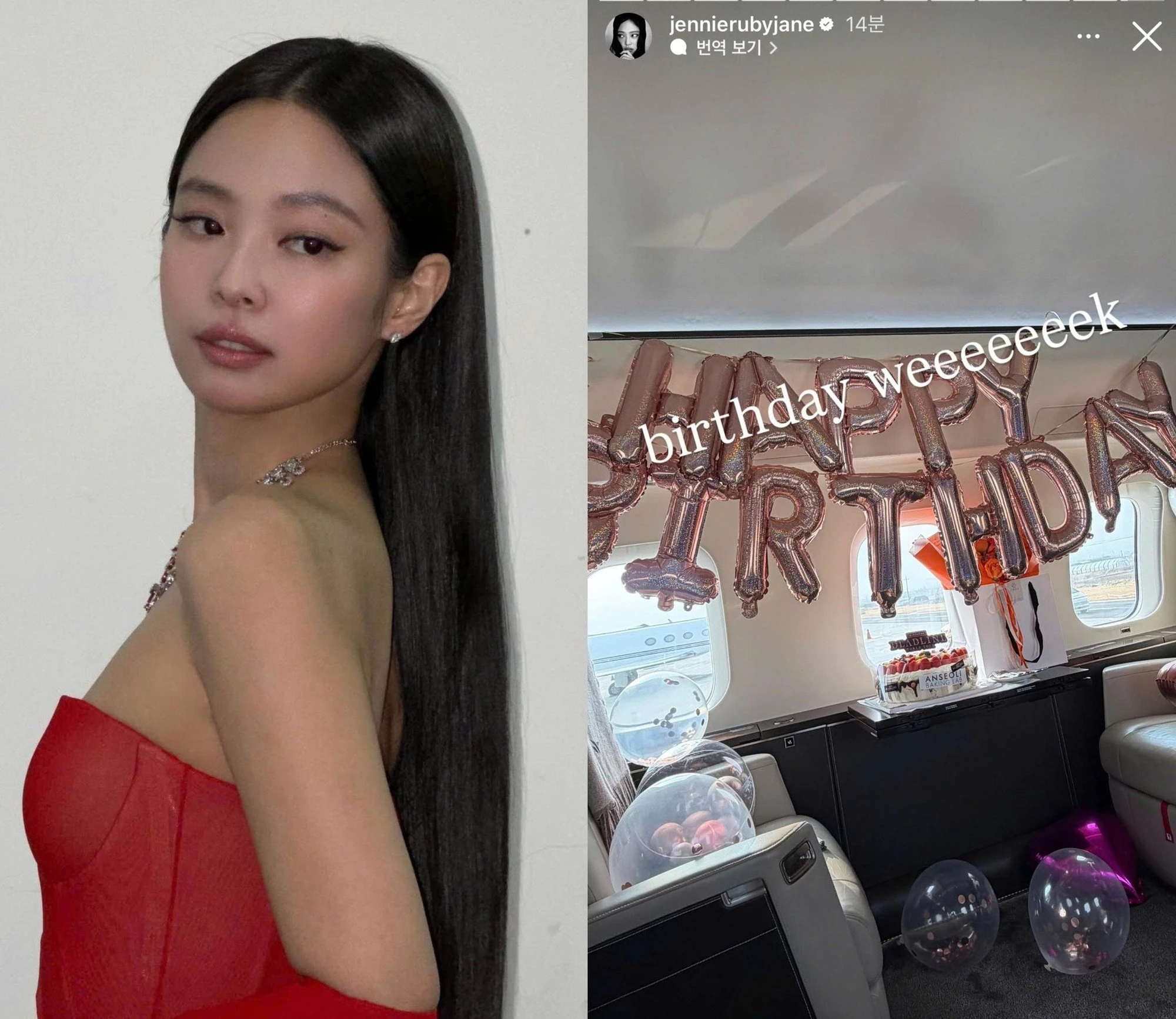 Sự giàu có và sang chảnh của Jennie tiếp tục được khẳng định qua những hình ảnh đón sinh nhật trên không trung. Cô nàng khiến dân tình ghen tị khi chia sẻ khoảnh khắc được vây quanh bởi hoa tươi, bánh kem đắt tiền và những món quà hàng hiệu ngay trong khoang hạng nhất của một chiếc máy bay riêng sang trọng. Được biết, cả ekip cùng BLACKPINK đã chuẩn bị bữa tiệc này cho Jennie trong chuyến bay đến Nhất Bản để thực hiện concert DEADLINE . Quả nhiên là “phú bà trẻ tuổi” đình đám của Kpop!