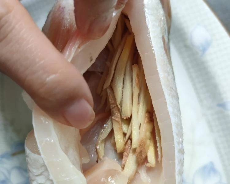 Bước 1: Sơ chế sạch cá rồi dùng dao khứa 3 đường trên cả 2 mặt của cá để dễ tẩm ướp gia vị hơn, sau đó rắc đều muối và rượu gạo. Hành lá bạn rửa sạch, cắt thành khúc ngắn, gừng thái lát. Sau đó bạn nhồi hành lá và gừng vào bụng cá rồi rắc một chút xíu muối cùng rượu nấu ăn lên thân cá. Mát xa một lúc rồi ướp cá trong khoảng 15 phút. Sau đó bạn cho cá vào đĩa sâu lòng.