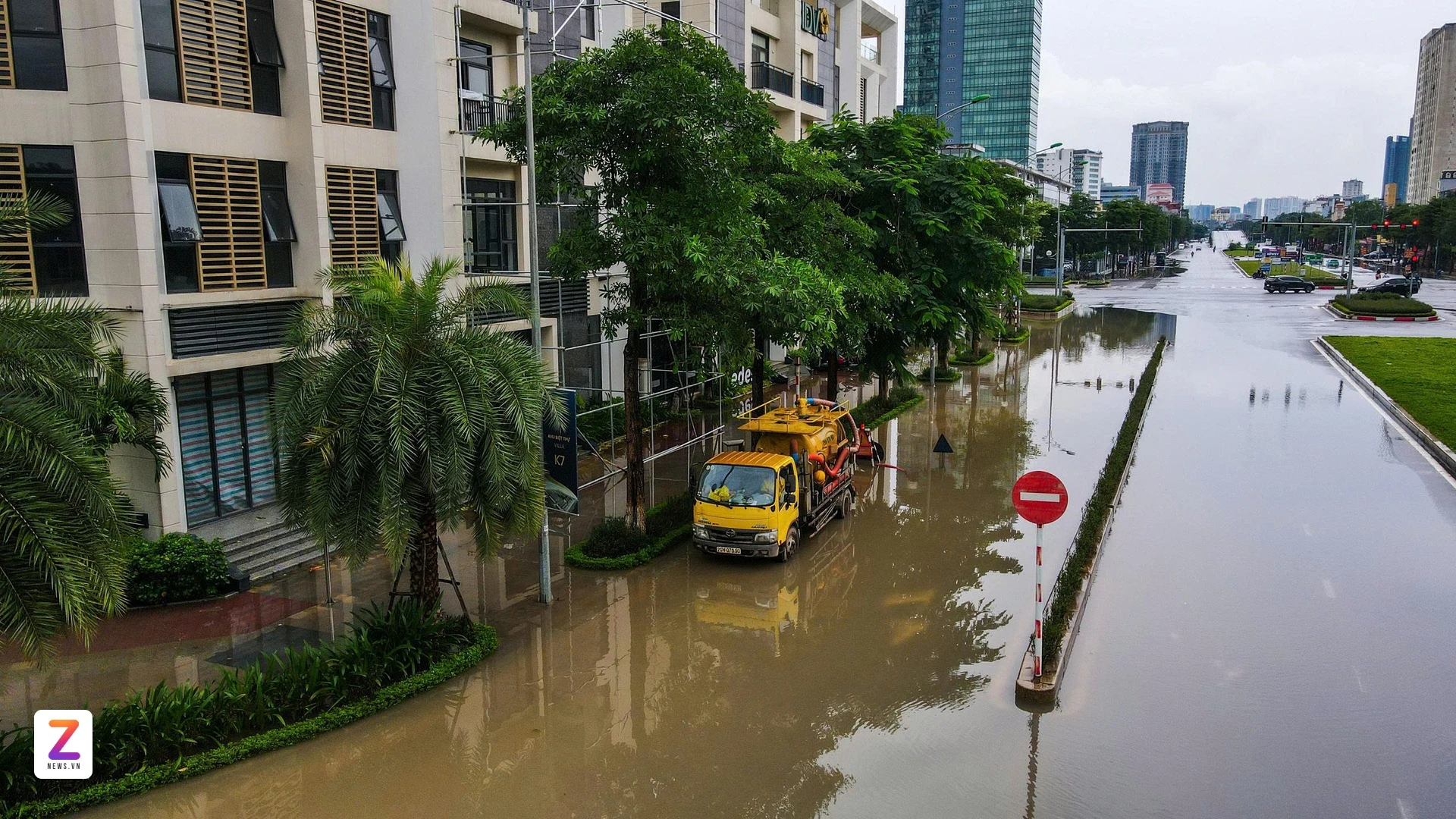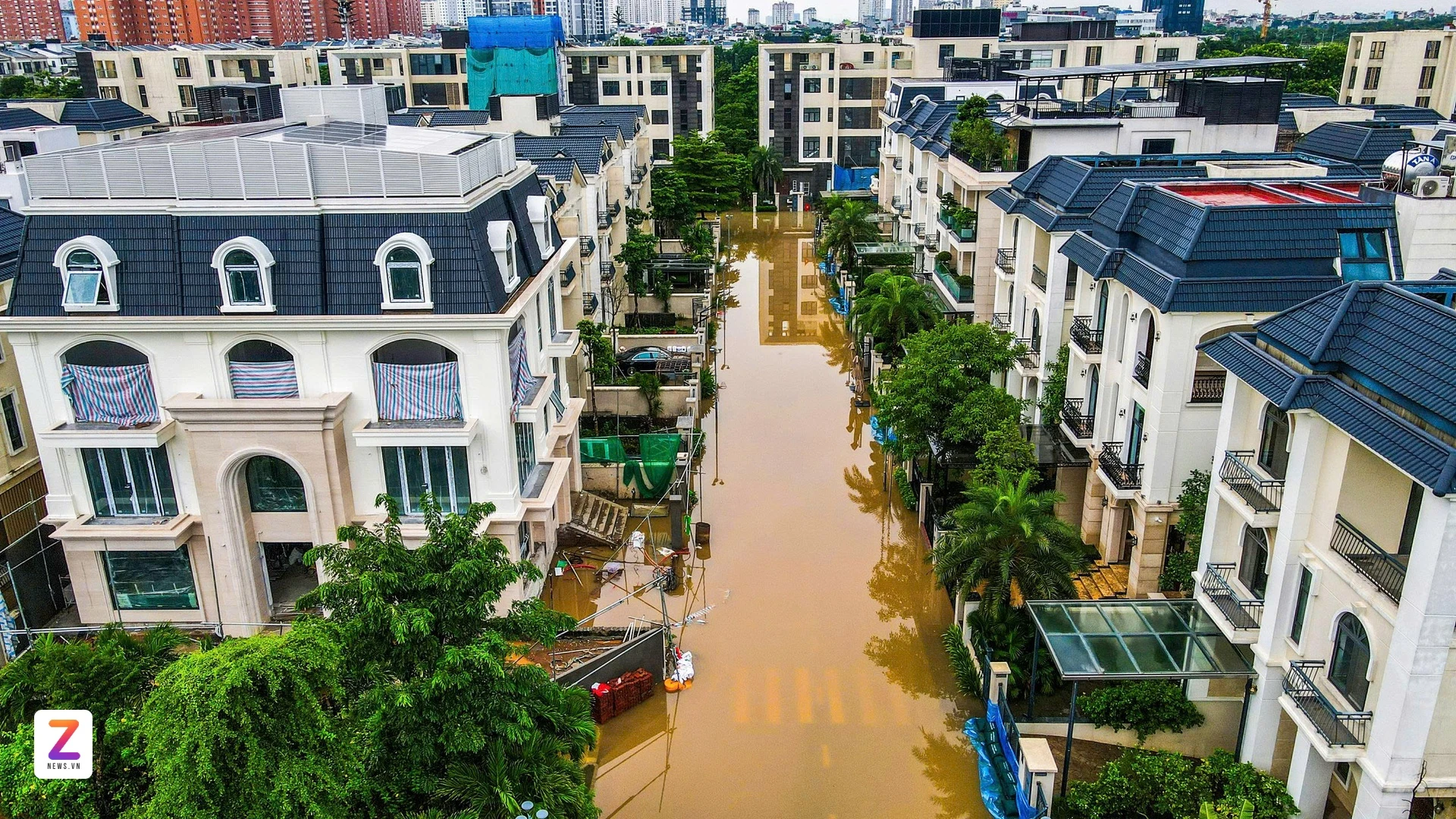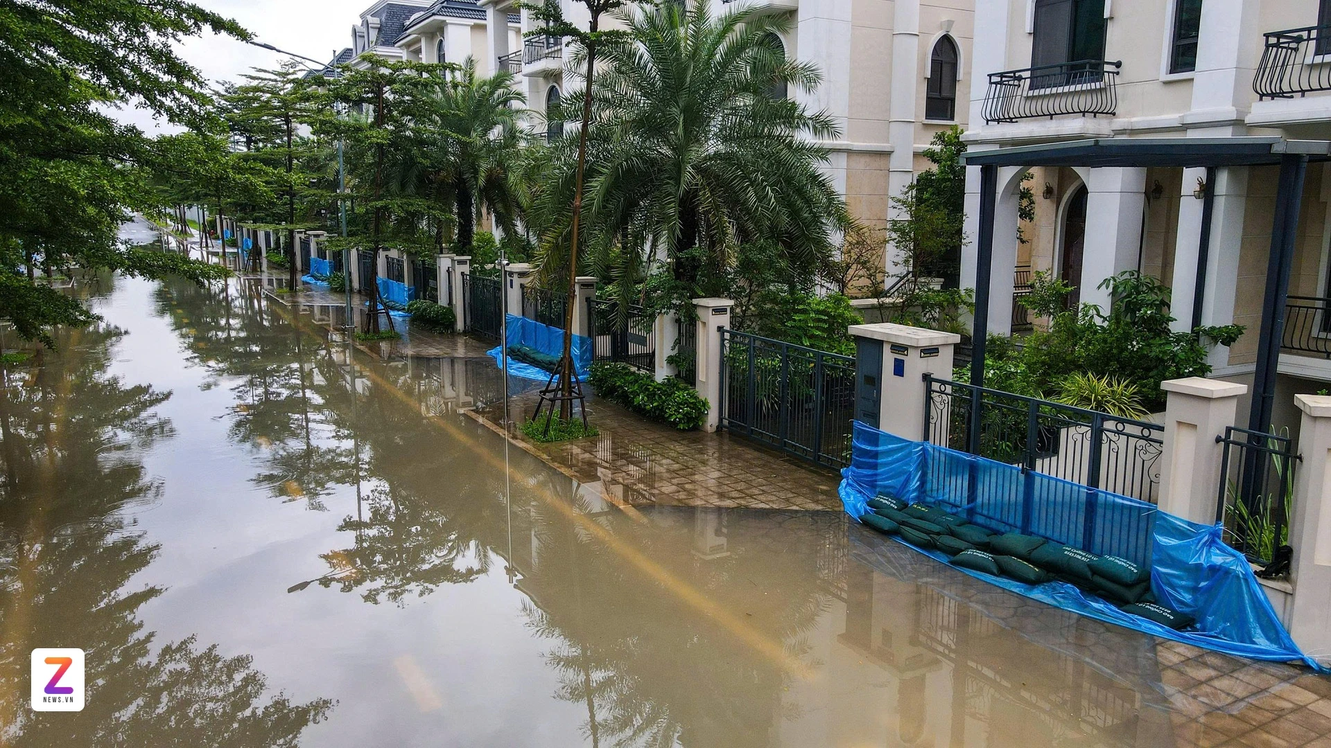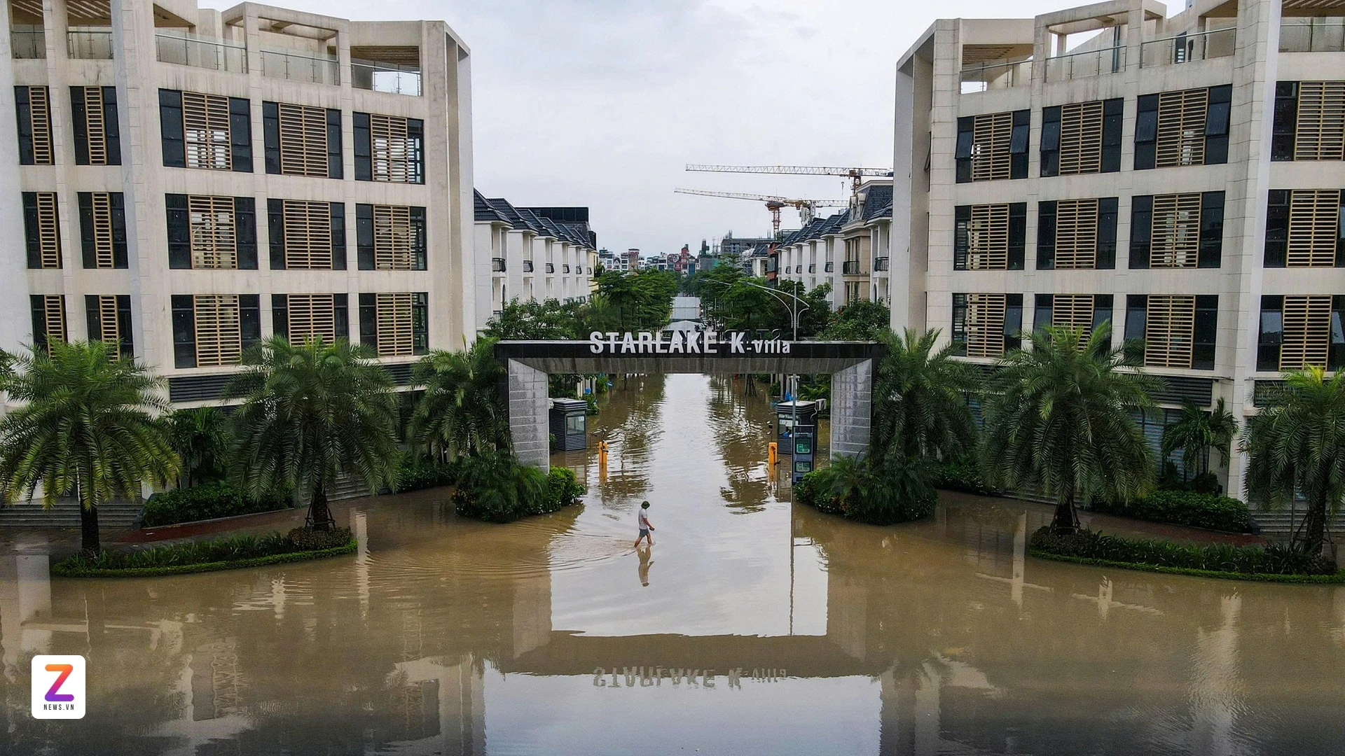 Tuy nhiên, theo ghi nhận của Tri Thức – Znews , đến trưa 7/10 nước vẫn chưa rút, khiến nhiều cư dân khu đô thị triệu USD mắc kẹt trong nhà.