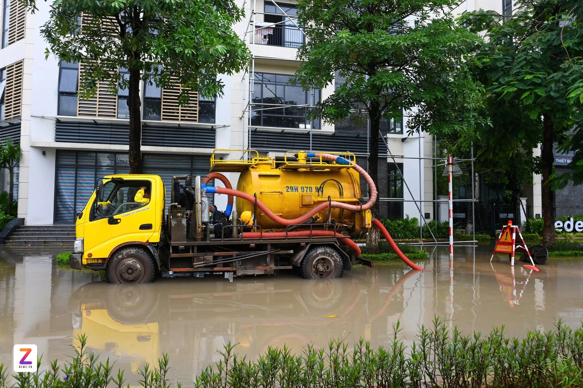 Đồng thời, một số xe thoát nước được huy động để hỗ trợ bơm thoát nước ra ngoài.