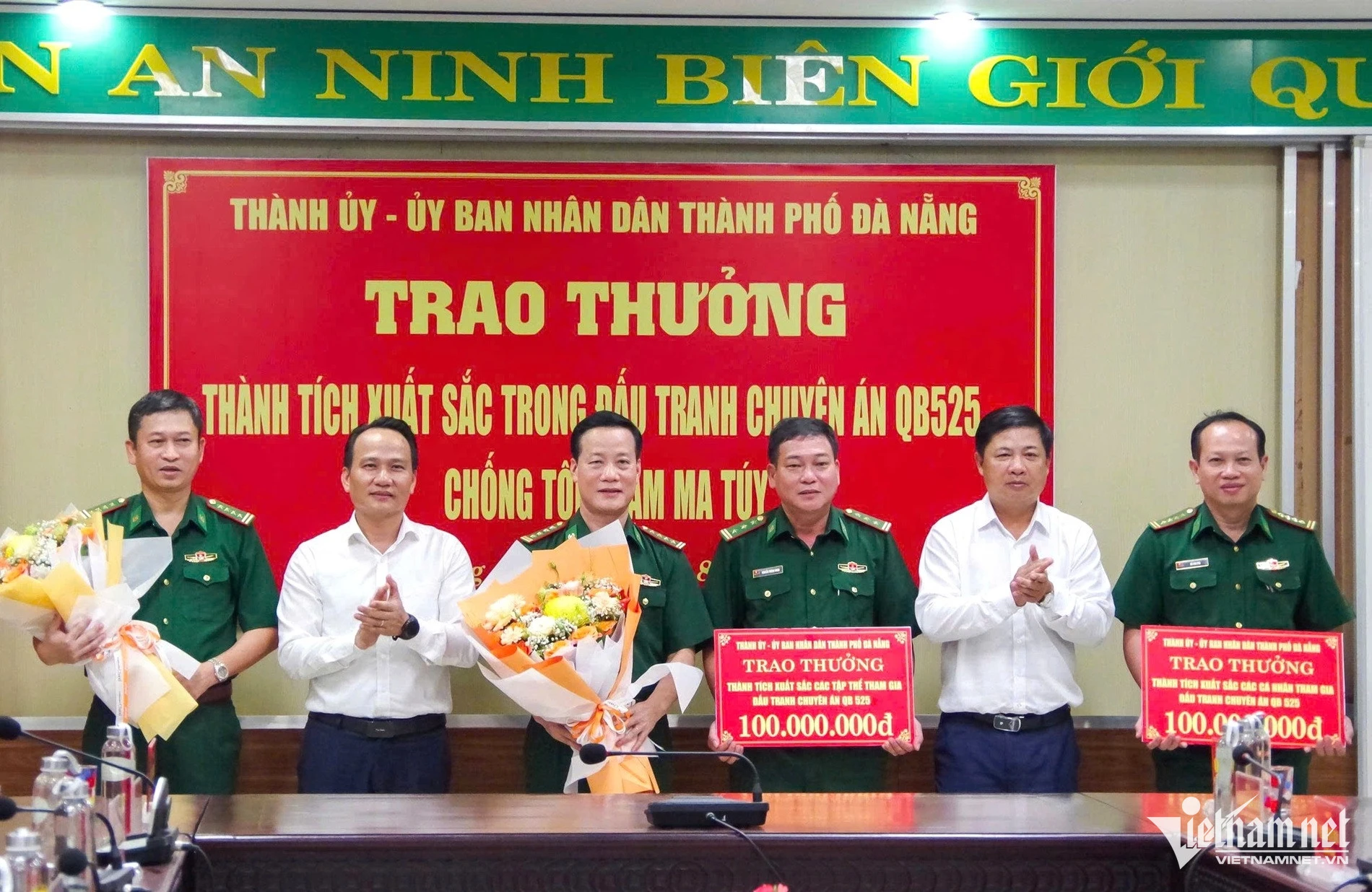 Ngày 17/8, Thành ủy - UBND TP Đà Nẵng tổ chức khen thưởng Ban Chuyên án QB525 vì thành tích phát hiện, triệt phá đường dây vận chuyển ma túy xuyên quốc gia, thu giữ gần 300kg ma túy cùng nhiều tang vật liên quan.