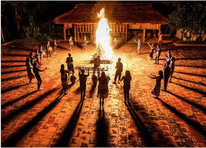 Sinh hoạt văn nghệ truyền thống tại Nhà dài thôn Hòn Dung. (Ảnh do địa phương cung cấp)