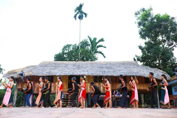 Biểu diễn văn nghệ truyền thống tại Nhà dài thôn Hòn Dung. (Ảnh do địa phương cung cấp)