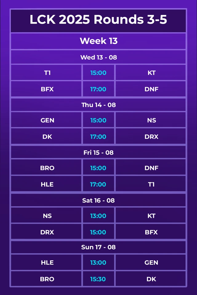 Lịch thi đấu LCK 2025 Rounds 3-5 mới nhất