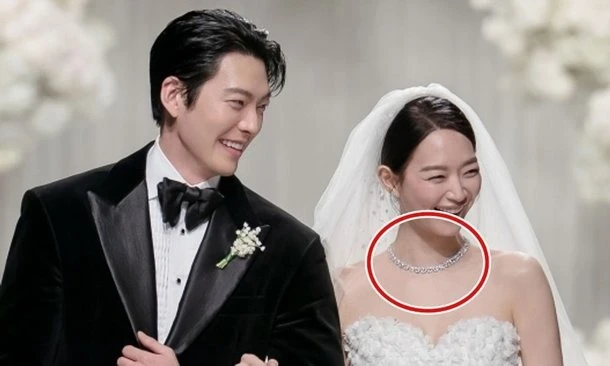 Theo tờ Nate, Shin Min Ah đã mặc váy cưới của nhà Elie Saab. Mẫu váy cưới của cô có giá khoảng 42,25 triệu won (tương đương 750 triệu đồng). Trùng hợp là Elie Saab cũng chính là thương hiệu váy cưới mà minh tinh Son Ye Jin "chọn mặt gửi vàng" cho ngày vui của mình và Hyun Bin.