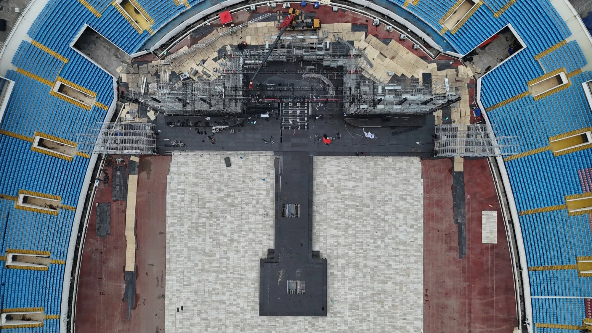 Nhiều ngày qua, đội ngũ kỹ thuật lắp đặt, tinh chỉnh hệ thống âm thanh và ánh sáng. Mỗi chi tiết từ vị trí đặt loa, góc chiếu sáng, đến hiệu ứng đồ họa đều được tính toán và kiểm tra tỉ mỉ nhằm đảm bảo sự đồng nhất và hoàn hảo trong suốt chương trình.