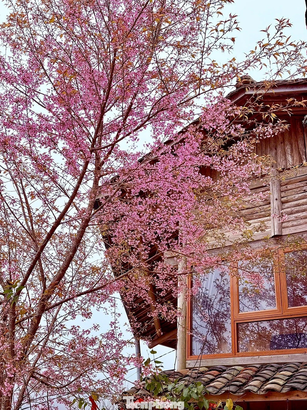 Từ cuối tháng 12/2025, những cây hoa Tớ Dày trồng xen trong vườn nhà dân và ven các lối đi bắt đầu bung nở. Sang đầu tháng 1, hoa vào độ đẹp nhất với sắc hồng phớt nhẹ, cánh mỏng, tạo nên khung cảnh yên bình giữa những ngôi nhà trình tường, hàng rào đá và núi đá tai mèo đặc trưng của Lô Lô Chải.