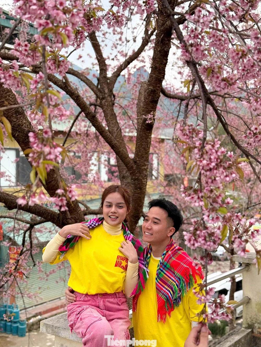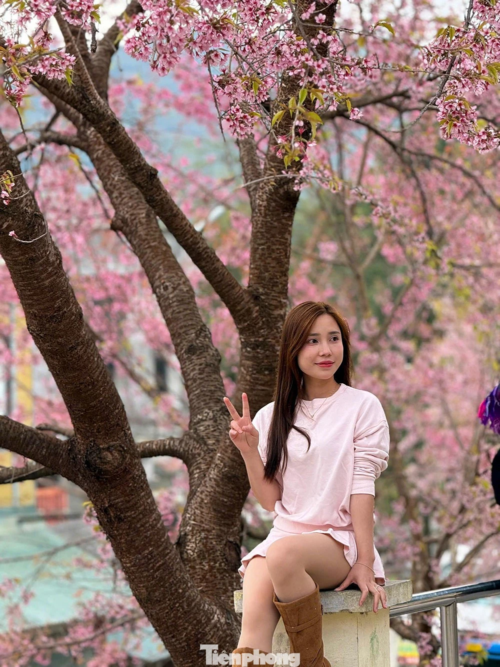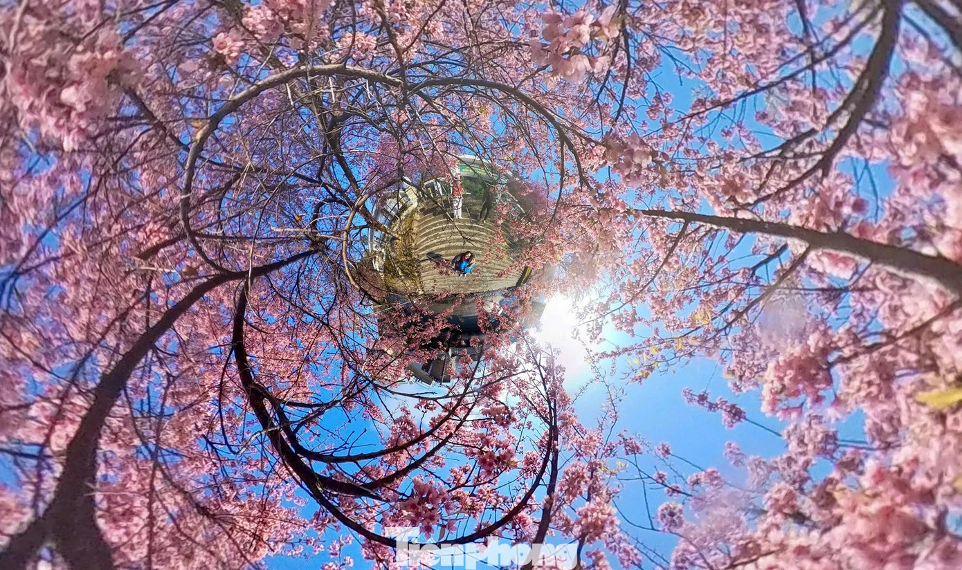 Sắc hoa hồng phấn xen lẫn màu xanh của núi rừng tạo nên khung cảnh được ví như "mùa Xuân sớm" nơi địa đầu, trở thành phông nền được nhiều du khách lựa chọn để lưu giữ khoảnh khắc đầu năm.