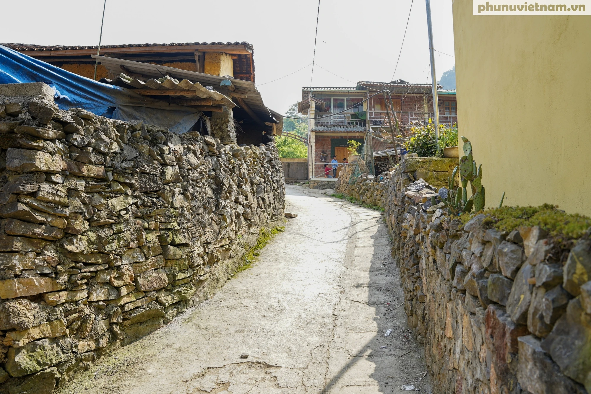Con đường vào bản uốn lượn giữa hai bờ rào đá xếp tay, nắng sớm phủ rêu xanh, dẫn về sân phơi ngô và bếp khói, được ví như những "dấu vân tay" của cao nguyên đá