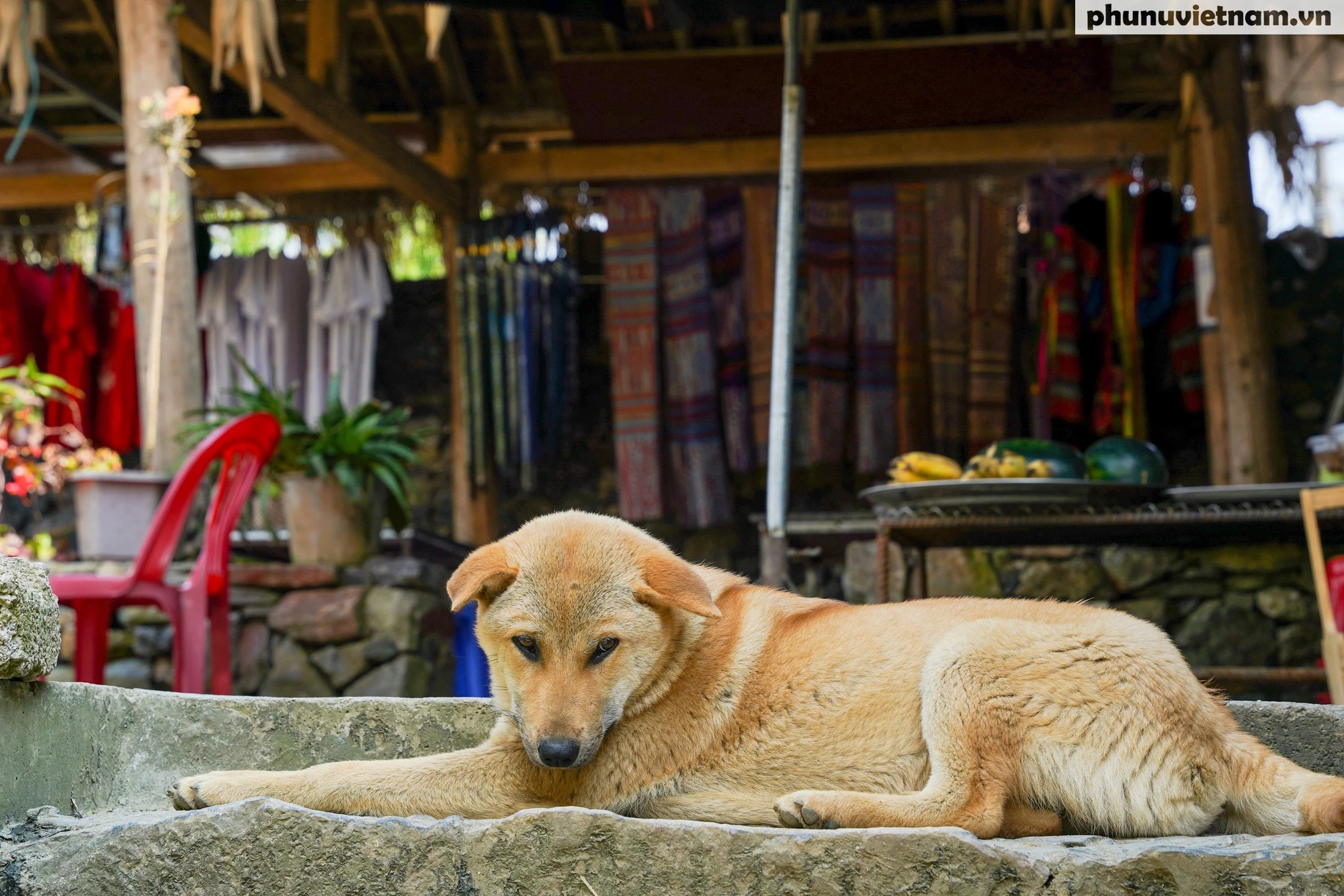Tại một tiệm tạp hóa, chú chó lim dim bên những tấm thổ cẩm sặc sỡ. Trong quầy nhỏ là hũ chẩm chéo, mật ong bạc hà - những sản vật kể câu chuyện đời sống và nghề thủ công vùng cao