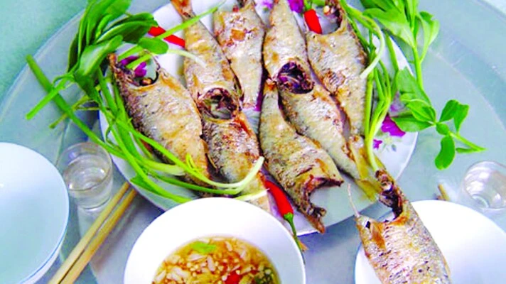 1. Cá mòi chiên: Đây là món ăn đơn giản, dễ làm nhưng lại rất được yêu thích. Cá mòi chiên có lớp vỏ giòn rụm, thịt cá bên trong ngọt mềm, chấm cùng mắm gừng hoặc tương ớt đều ngon.
