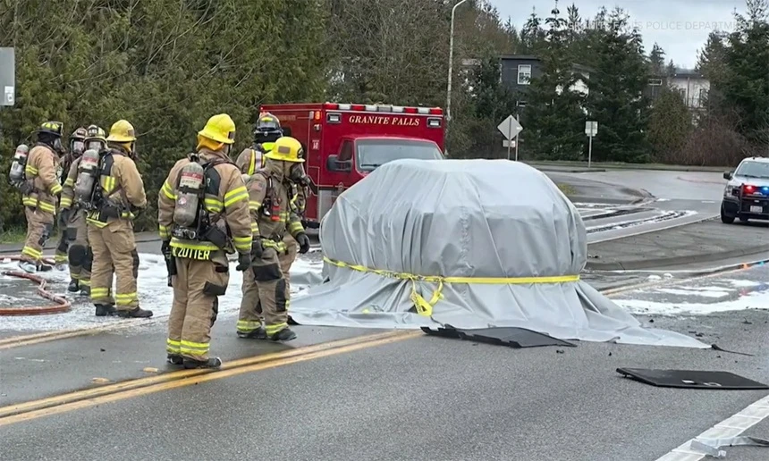 Theo Sở cứu hỏa và cứu hộ khu vực Snohomish, một chiếc xe điện đã bốc cháy khi đang chạy trên đường SR-92 vào sáng sớm 17/3. Trên tất cả xe của đội đều có một chiếc chăn chữa cháy xe điện đặc biệt để dùng cho các tình huống như thế này. Lính cứu hỏa sẽ phủ chăn lên xe và dội nước vào pin.