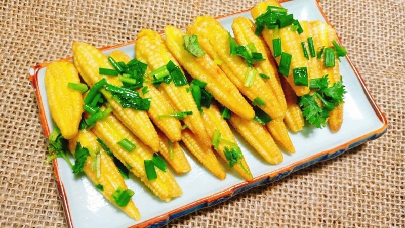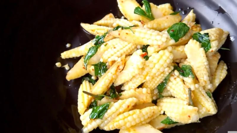 2 cách làm bắp non xào tỏi và bắp non xào mì căn chay thơm ngon thanh đạm