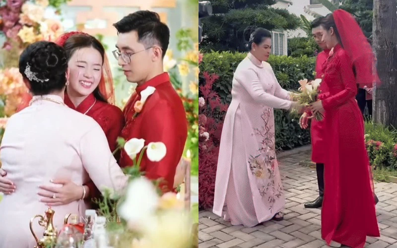 Trong lễ vu quy của Midu, mẹ chồng – nàng dâu có nhiều khoảnh khắc tương tác rất tình cảm. Khi trao trang sức cho Midu, mẹ chồng liên tục mỉm cười, có những lời dặn dò và không quên trao cho con dâu cái ôm ấm áp. Ngay cả bạn bè của Midu có mặt tại đó cũng cảm thấy hạnh phúc lây vì mỗi hành động của mẹ chồng đều cho thấy tình cảm chân thành đối với cô.