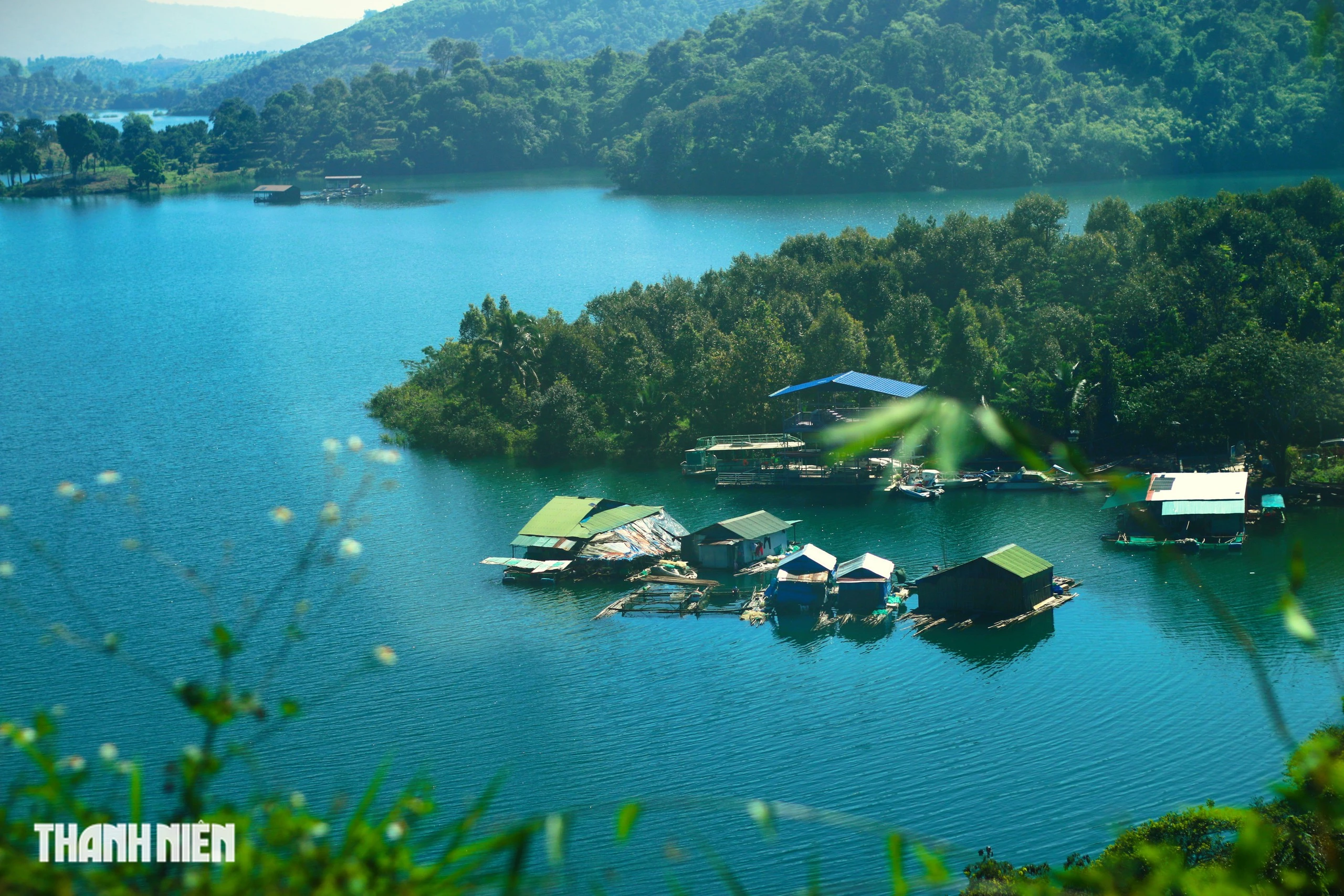 Những căn nhà trên bè nổi hồ Hàm Thuận giữa đồi núi