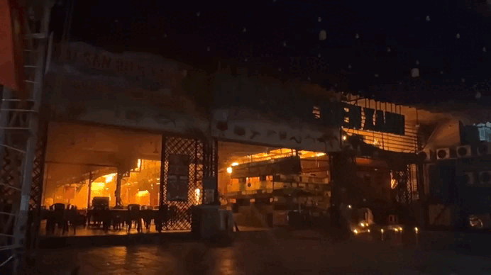 Các nhân viên của nhà hàng đã tìm cách dập lửa, nhưng bất thành. Ngọn lửa lan nhanh, bao trùm phần mái của nhà hàng rộng hàng trăm mét vuông. Một cột lửa đỏ rực bốc cao hàng chục mét kèm theo nhiều tiếng nổ lớn, có nguy cơ cháy lan qua các cơ sở kinh doanh bên cạnh.