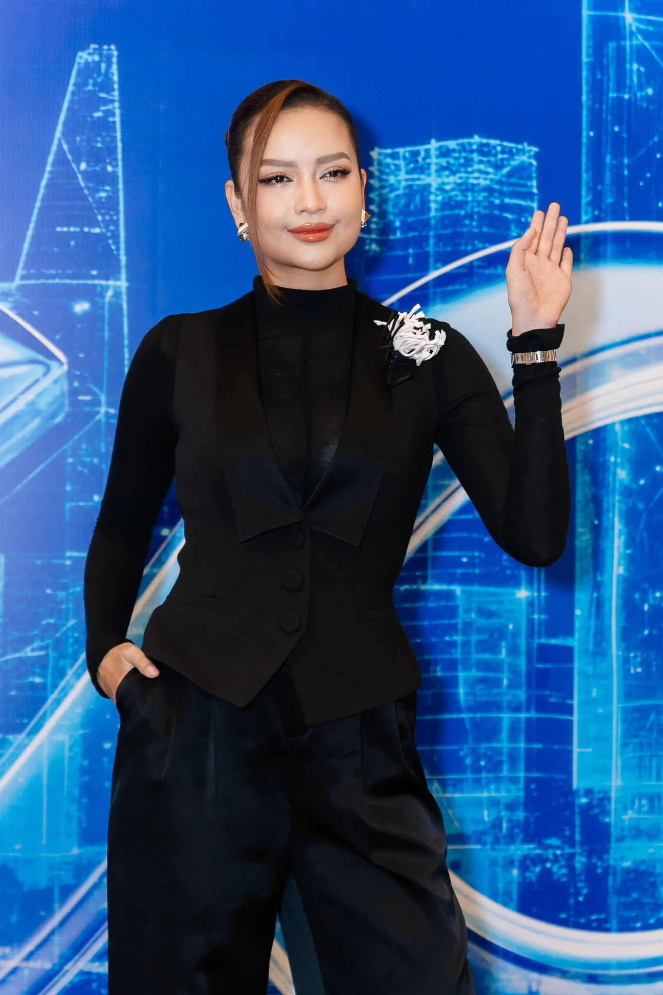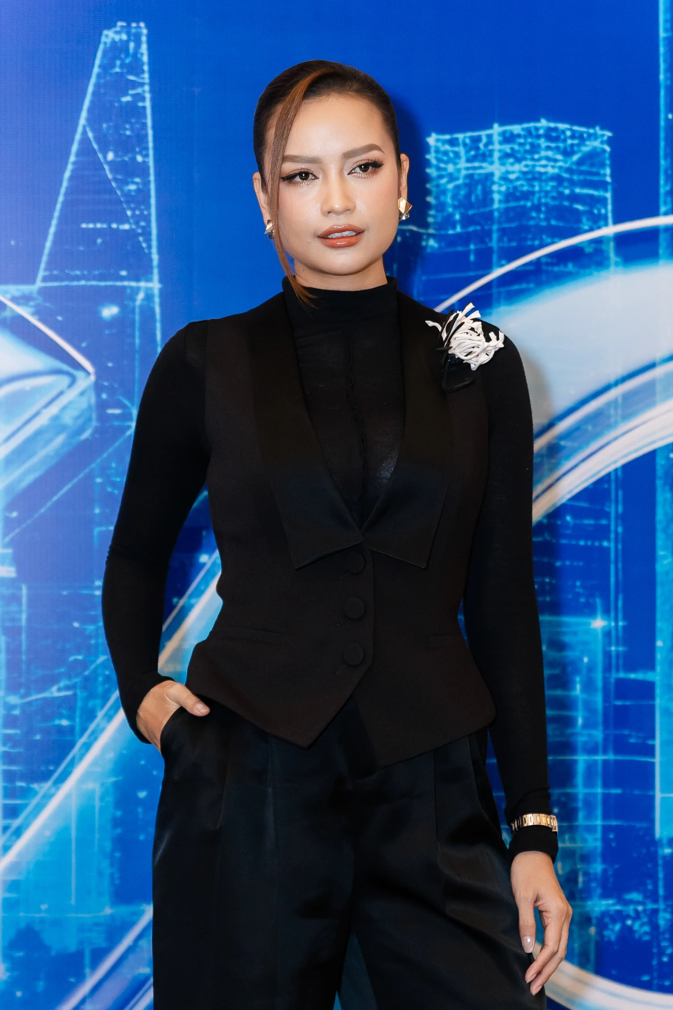 Chiều 2/11 diễn ra buổi họp báo công bố Miss Cosmo TP.HCM 2026, thu hút dàn mỹ nhân đình đám của showbiz Việt. Giữ vai trò Giám đốc quốc gia của Miss Cosmo, Ngọc Châu chọn phong cách menswear với áo gilet đen kết hợp áo cổ cao, khoe thần thái lạnh lùng, cá tính. Lý Nhã Kỳ lại chọn phong cách đối lập khi quyến rũ hết cỡ trong bộ váy đen khoét sâu, tôn vòng một nóng bỏng.