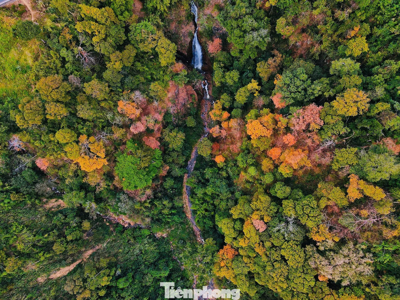 Sắc trắng của thác nước hòa quyện cùng gam màu nóng của rừng lá đổi màu.