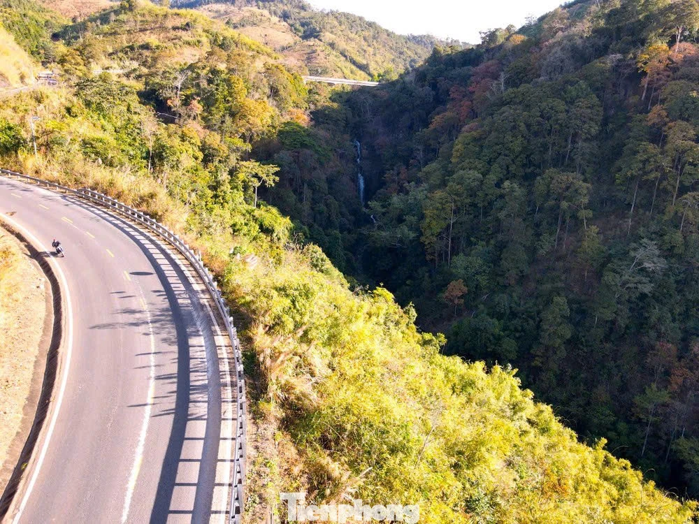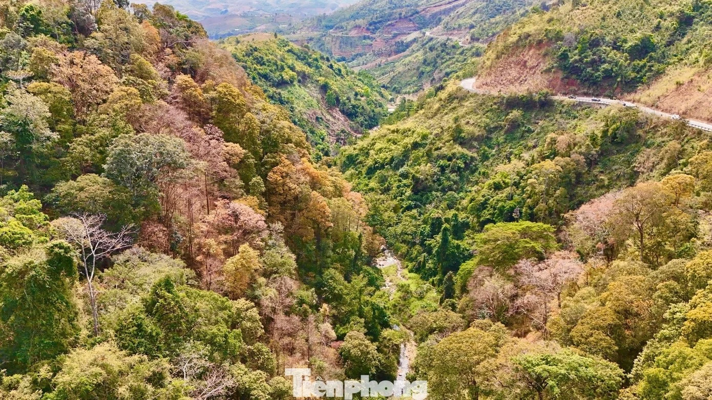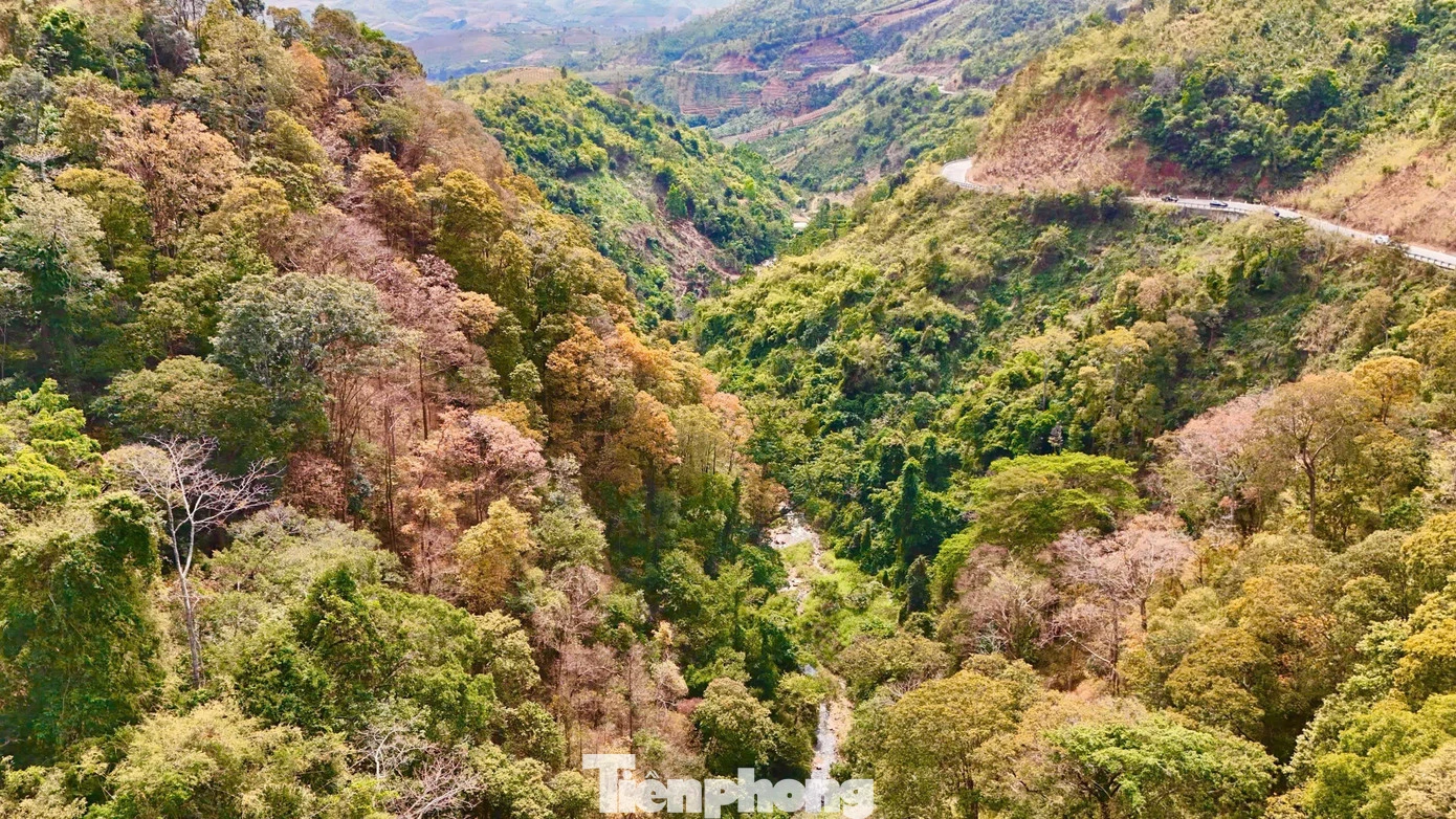 Nhìn từ trên cao, rừng bằng lăng trải dài theo các khe suối dưới chân đèo, gợi liên tưởng đến một bức tranh sơn dầu khổng lồ nơi thiên nhiên phóng khoáng vẽ nên những đường nét tự do. Hai bên dòng nước, những thân cây vươn thẳng soi bóng xuống mặt suối trong vắt, kết hợp với những đoạn thác đổ trắng xóa giữa nền rừng đổi màu, làm nổi bật vẻ đẹp nguyên sơ của cảnh vật.