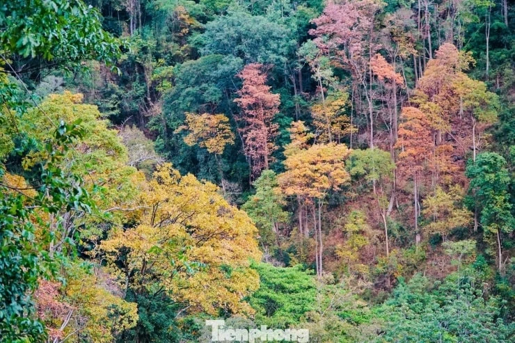 Lá non, lá già xen kẽ, chưa kịp rụng hết đã đổi màu, tạo nên những mảng màu chồng lớp, không cây nào giống cây nào. Sự chuyển sắc không đồng loạt khiến cả cánh rừng như đang "chuyển động", mỗi góc nhìn lại mang một gam màu khác nhau, từ rực rỡ đến trầm lắng.
