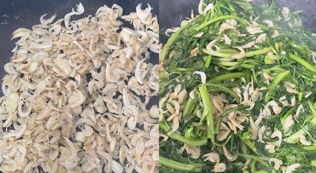 3. Cải cúc xào tôm khô (hoặc tép khô) thơm lừng bếp nhà, càng ăn càng thấy ấm bụng