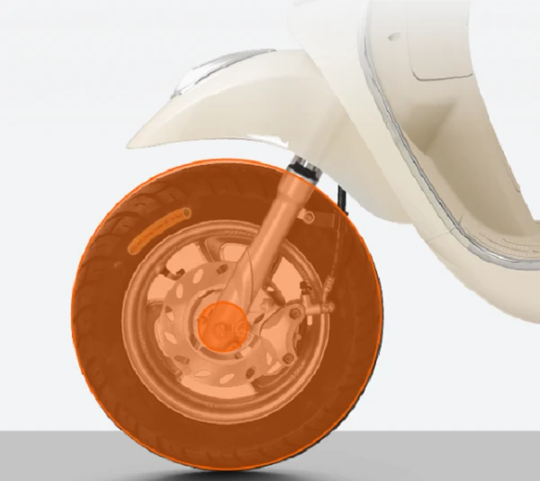 Moda Aero E 2026 sử dụng bộ vành 14 inch cho cả trước và sau, đi kèm lốp kích thước 90/90 phía trước và 100/90 phía sau. Hệ thống phanh bao gồm đĩa thủy lực ở bánh trước và phanh tang trống ở bánh sau. Giảm xóc trước là loại ống lồng, trong khi phía sau dùng giảm xóc đơn monoshock có thể điều chỉnh tải trước.