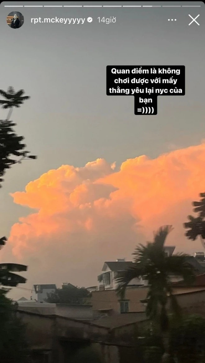 Thậm chí, MCK đăng đàn "cà khịa" mối quan hệ của bạn thân cũ và tình cũ của mình với dòng trạng thái: "Quan điểm là không chơi được với mấy thằng yêu lại nyc của bạn".