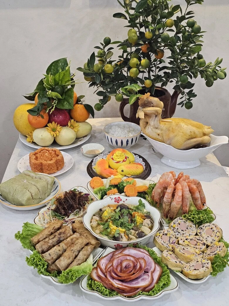 Trong không khí rộn ràng ấy, mâm cỗ cúng ông Táo của chị Võ Kim Oanh gây chú ý bởi cách bày biện hài hòa, món ăn chỉn chu, vừa giữ được nét truyền thống, vừa toát lên sự tinh tế rất riêng của gia đình.