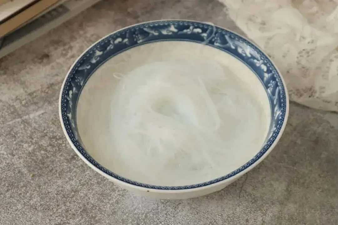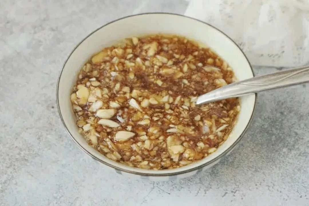 Bước 2: Miến bạn rửa sạch rồi chần qua nước sôi cho mềm, vớt ra để ráo. Tỏi đập dập, rồi băm nhỏ. Nếu thích tỏi băm nhuyễn bạn có thể cho tỏi vào máy xay. Sau đó cho tỏi vào bát, thêm nước tương, dầu hào, đường, tinh chất cốt gà, 1 thìa canh dầu ăn, 3 thìa canh nước vào, trộn đều.