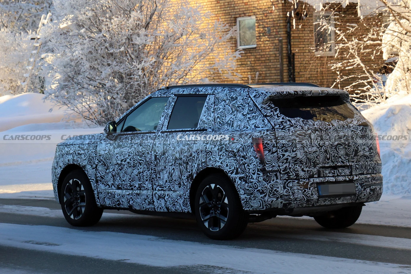Phần đuôi xe chưa lộ diện đầy đủ, song cụm đèn hậu dạng "móng vuốt" trước đây đã được thay bằng thiết kế đèn đứng cỡ lớn đặt ở hai góc ngoài. Vị trí biển số được chuyển từ cửa hậu xuống cản sau.