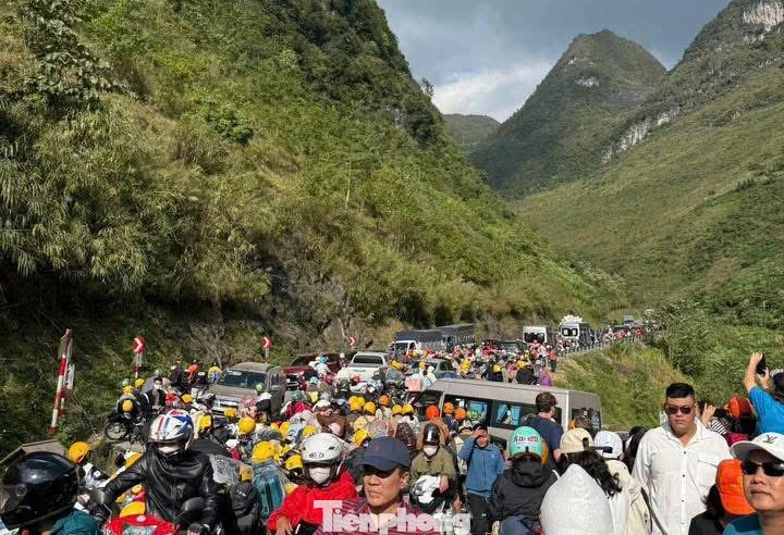 Tuyến Quốc lộ 4C đoạn qua dốc Thẩm Mã, cung đường nổi tiếng dẫn vào cao nguyên đá Đồng Văn, rơi vào tình trạng quá tải. Hàng dài ô tô, xe máy ken đặc từ chân dốc đến những khúc cua tay áo, tạo thành cảnh ùn tắc kéo dài. Tại một số đoạn, xe gần như "chôn chân", nhiều du khách phải xuống đi bộ để quan sát tình hình.