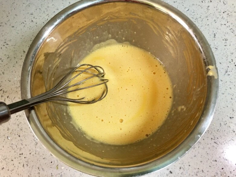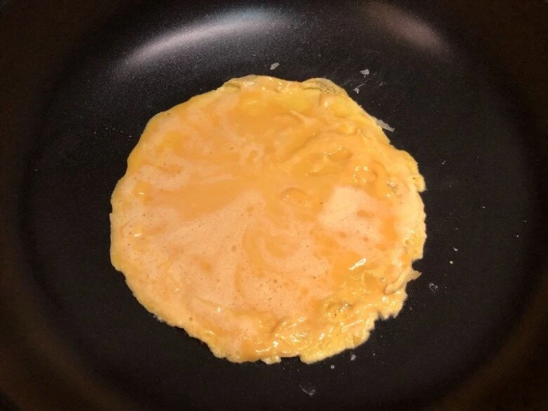 Đun nóng chảo, đổ trứng vào rán lửa nhỏ.