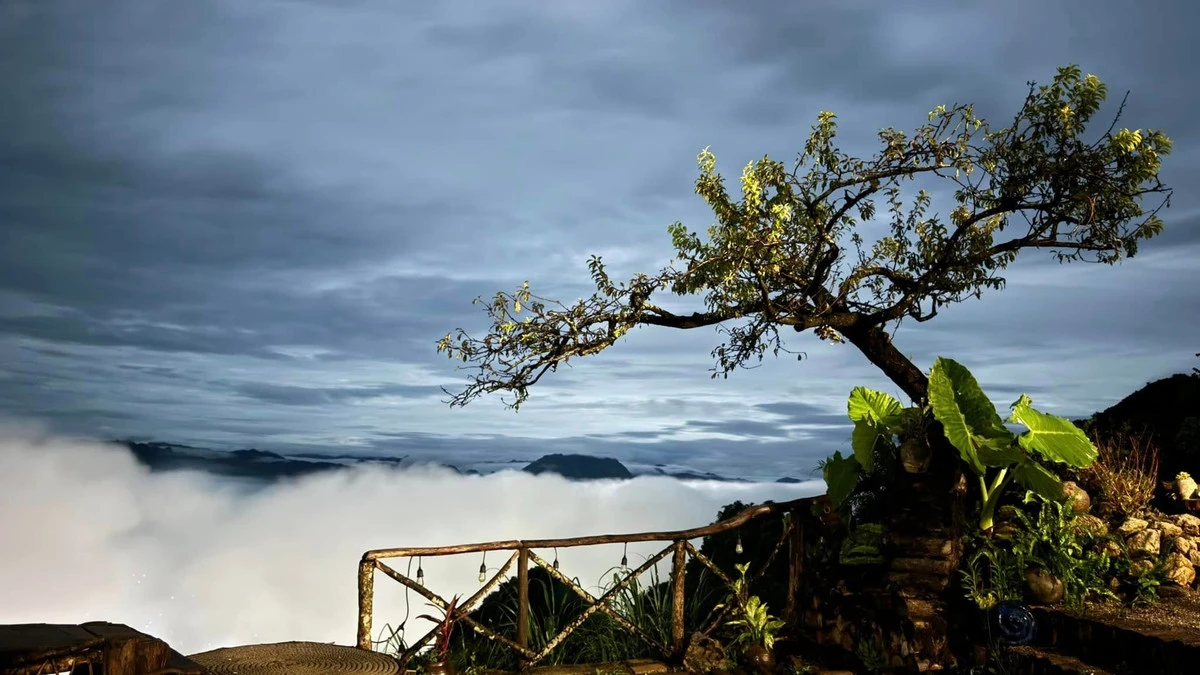 Không gian trên đỉnh núi gần như tách biệt hoàn toàn với khu dân cư, mang lại cảm giác tĩnh lặng hiếm có. Chỉ có gió núi, mây trời và sắc xanh của rừng bao quanh, Mu Náu trở thành điểm dừng chân lý tưởng cho những ai muốn tìm lại sự thư thái giữa thiên nhiên. Ảnh Tiệm cà phê Mu Náu Ơi